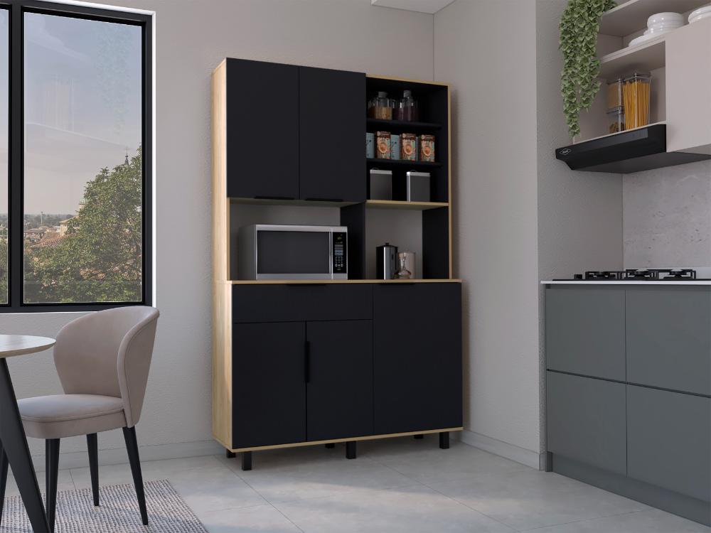 Alacena, con amplios espacios para almacenamiento, patas y manijas de acero, diseño moderno, fácil armado