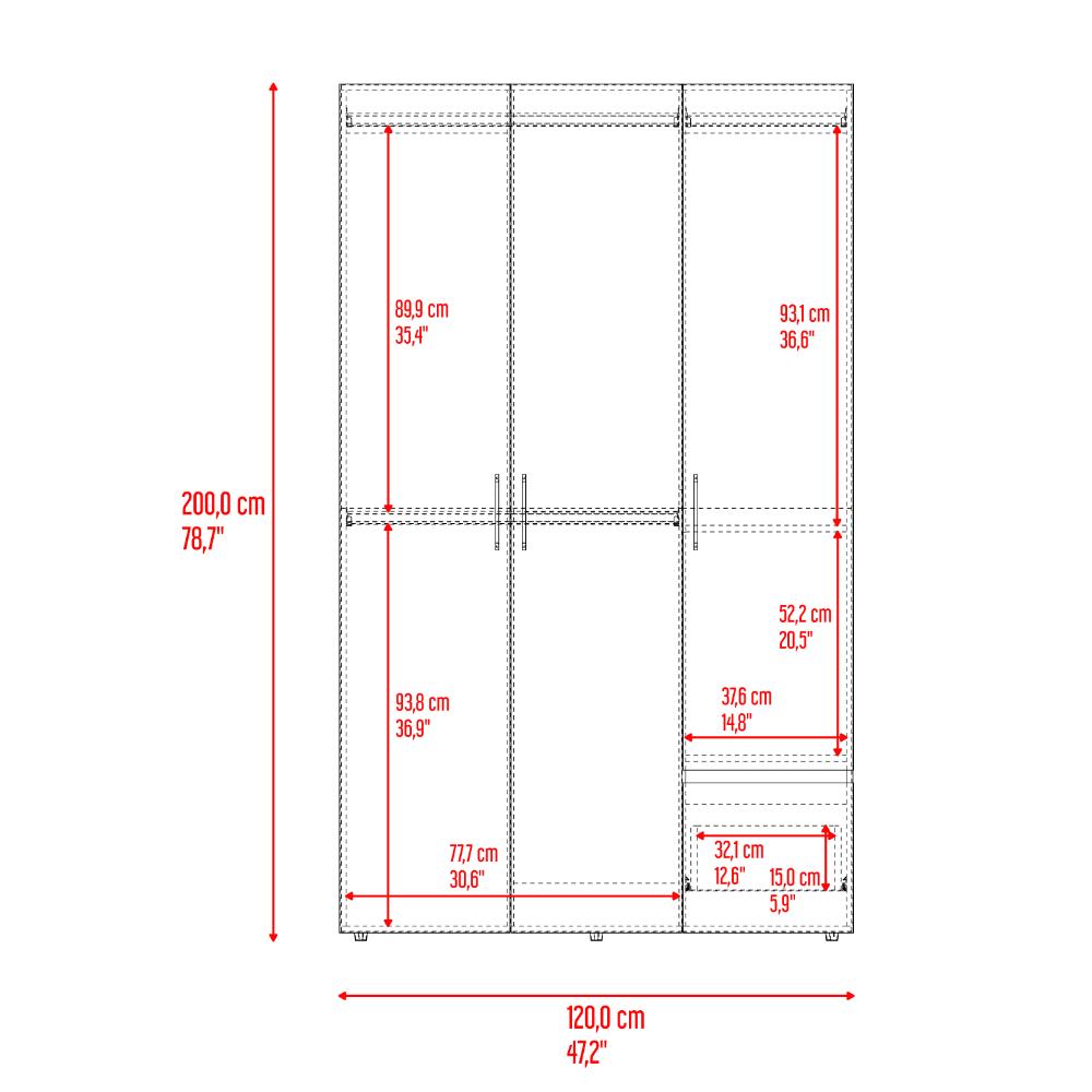 Closet, con 3 puertas abatibles, 1 cajón multiusos, tubos para colgar ropa, 2 entrepaños divisores, facil de ensamblar e instalar.