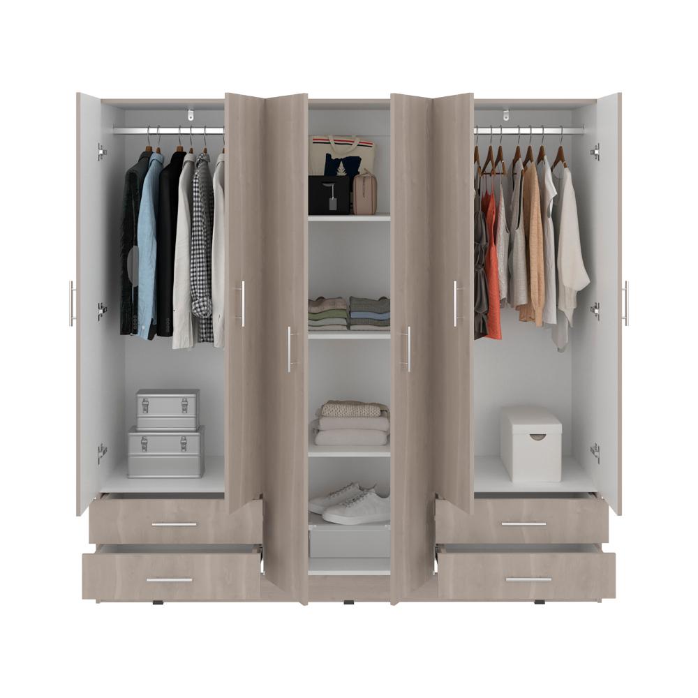 Closet, con amplios espacios y entrepaños para organizar, dos tubos de acero cromado para colgar, cuatro cajones organizadores multiusos cuatro puertas y de facil instalación.