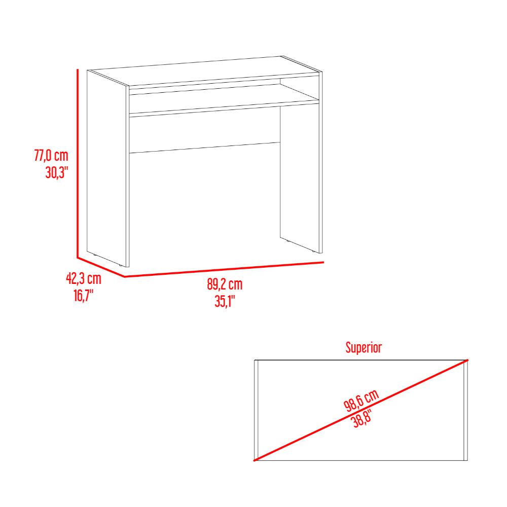 Escritorio, con amplia superficie de trabajo, cuenta con 1 entrepaño en la parte inferior para ubicar libros y/o elementos decorativos.