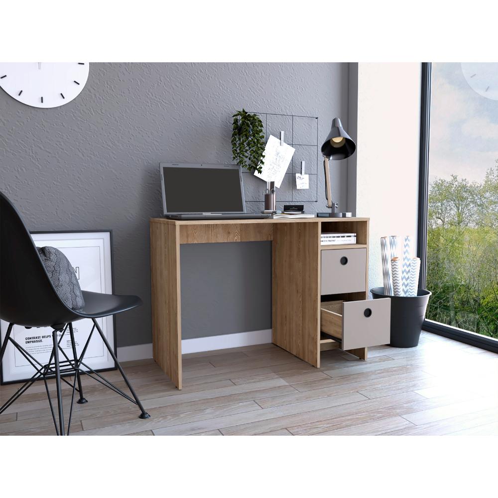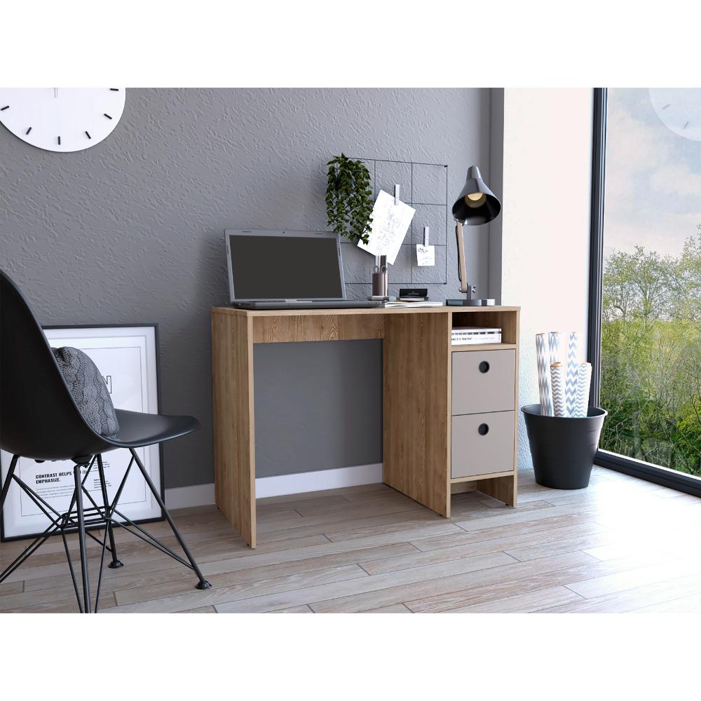 Escritorio Khaly, Miel y Cocoa, con Dos Cajones Organizadores
