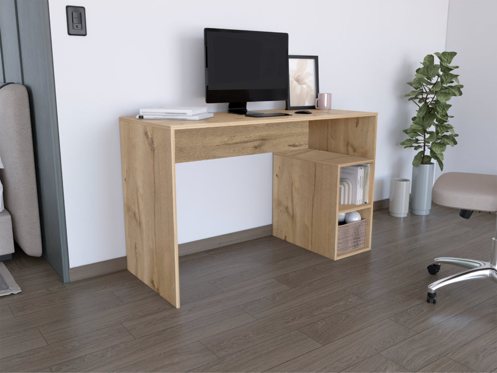 Escritorio Pekan, Café Claro, con espacio para colocar objetos decorativos