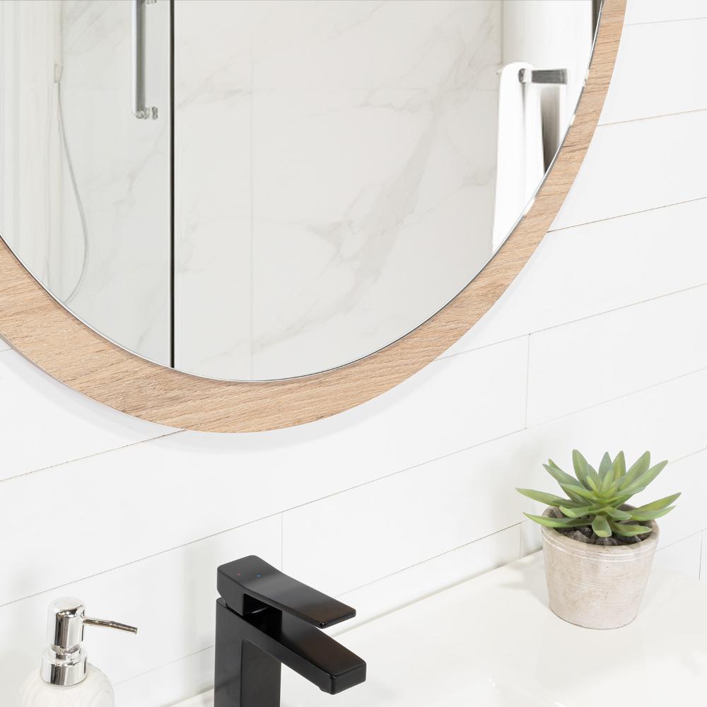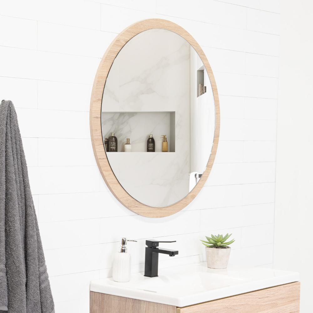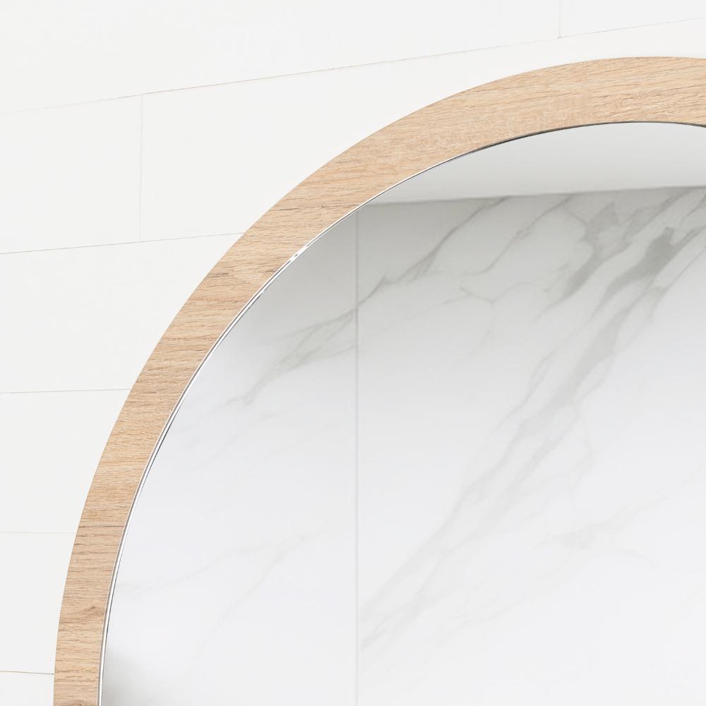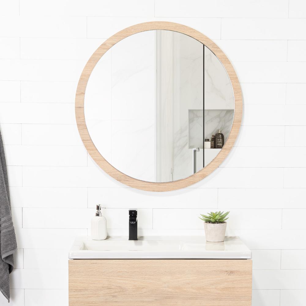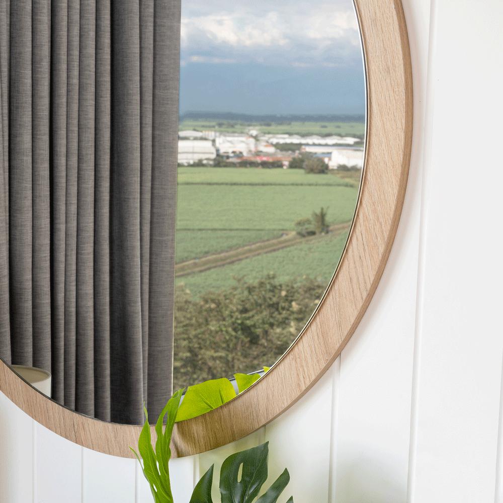 Espejo Circular con marco en madera MDP clara Cal 15mm y espejo Cal 4mm, con chaflán para facilitar su instalación