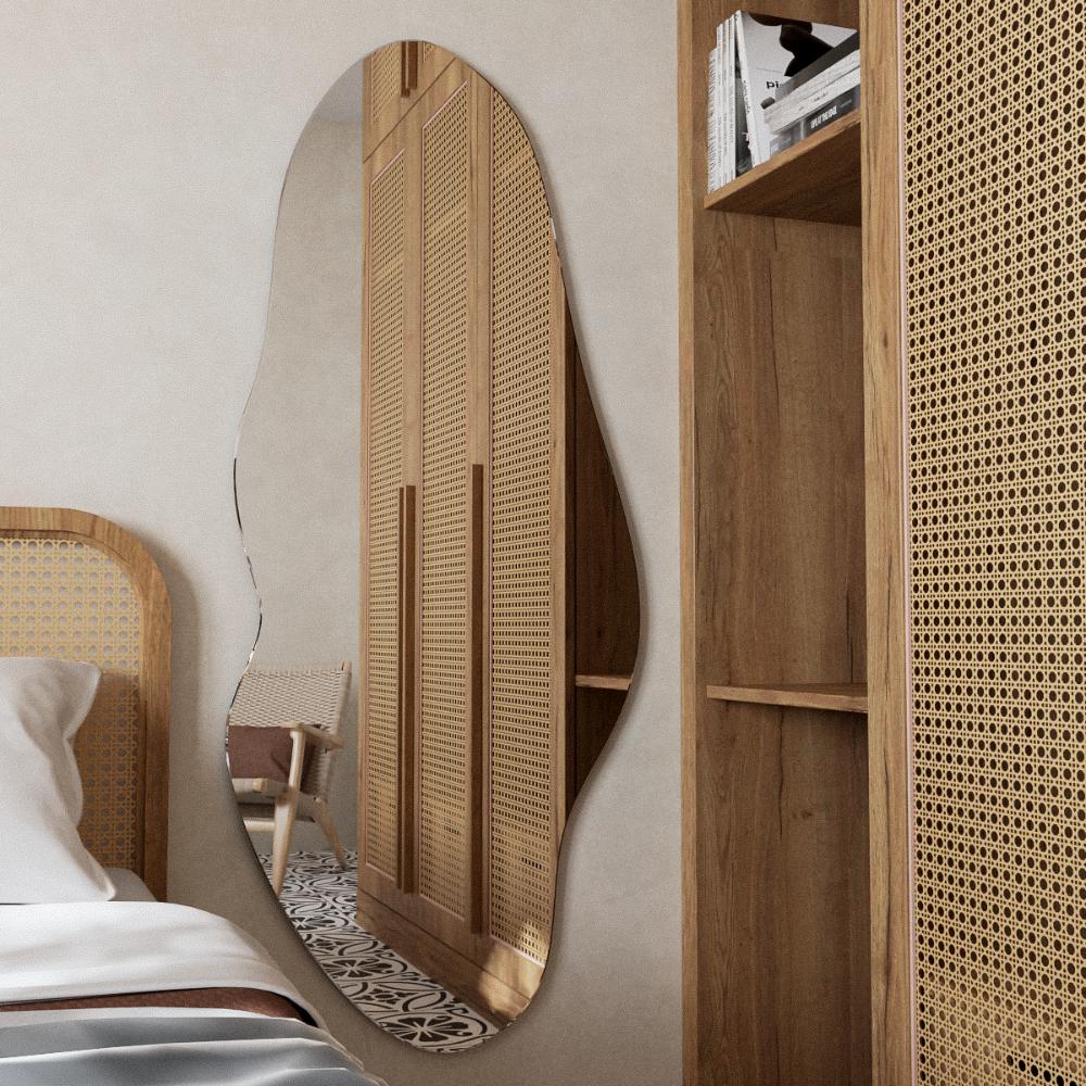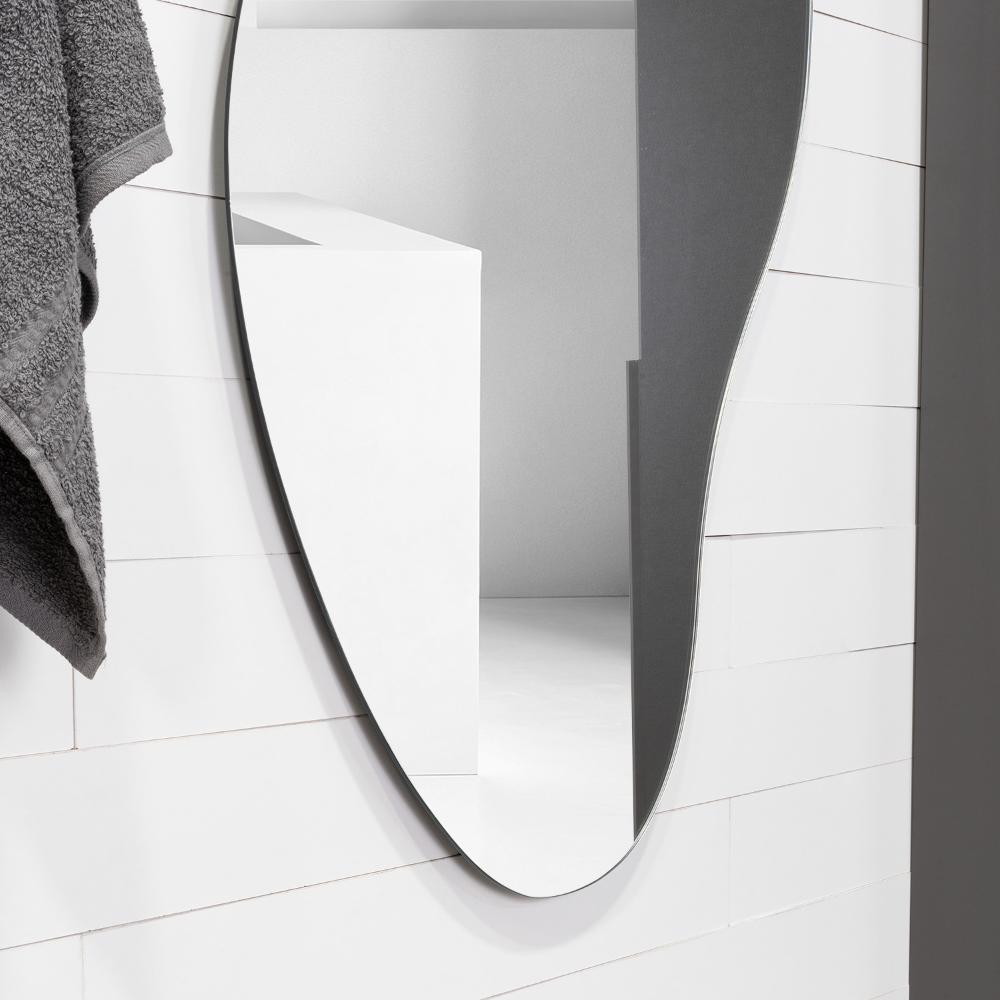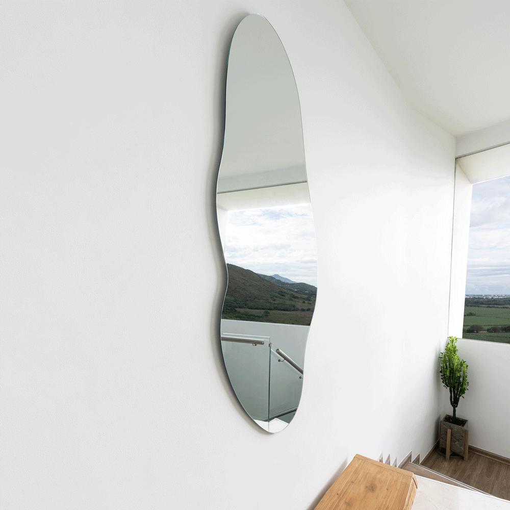 Espejo con forma irregular con ensamble a la pared con chaflán.