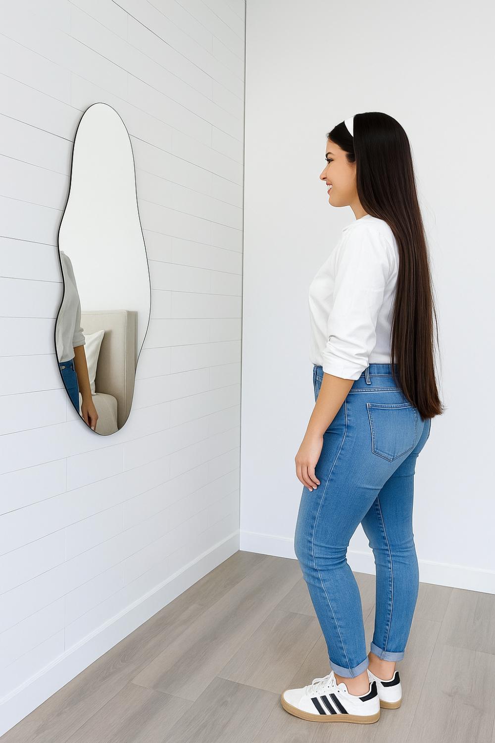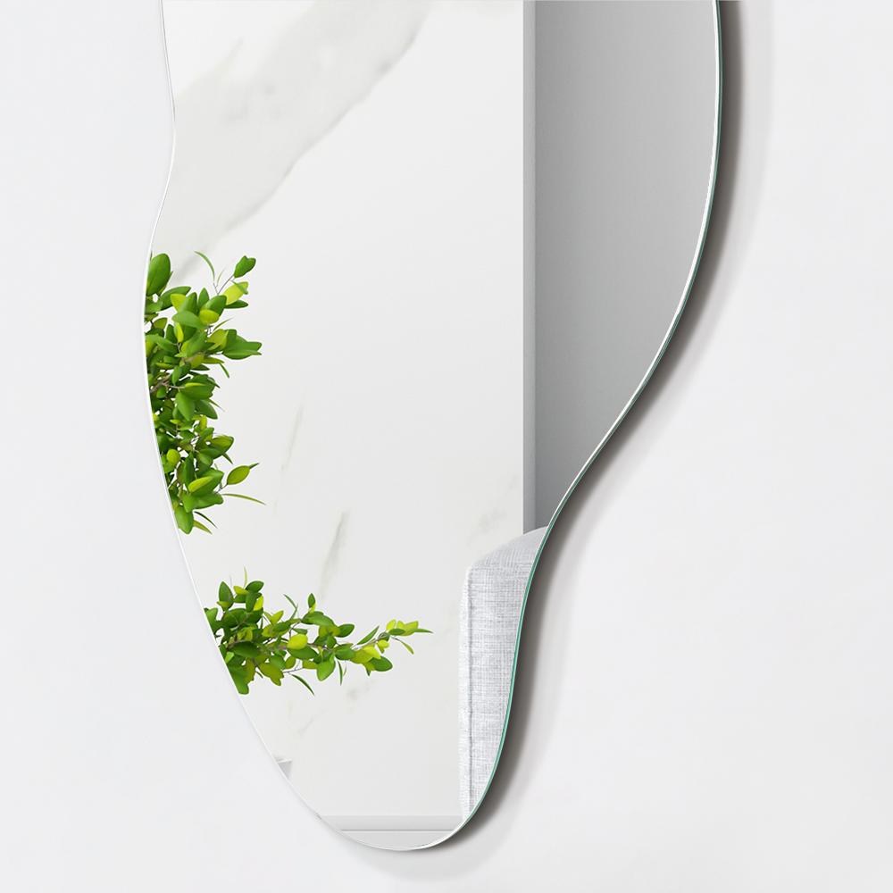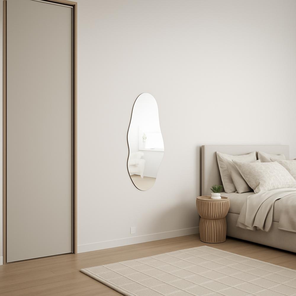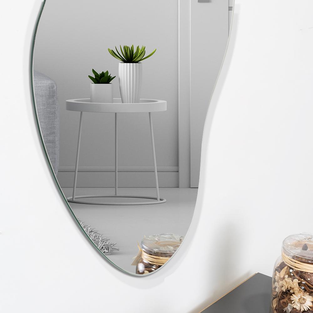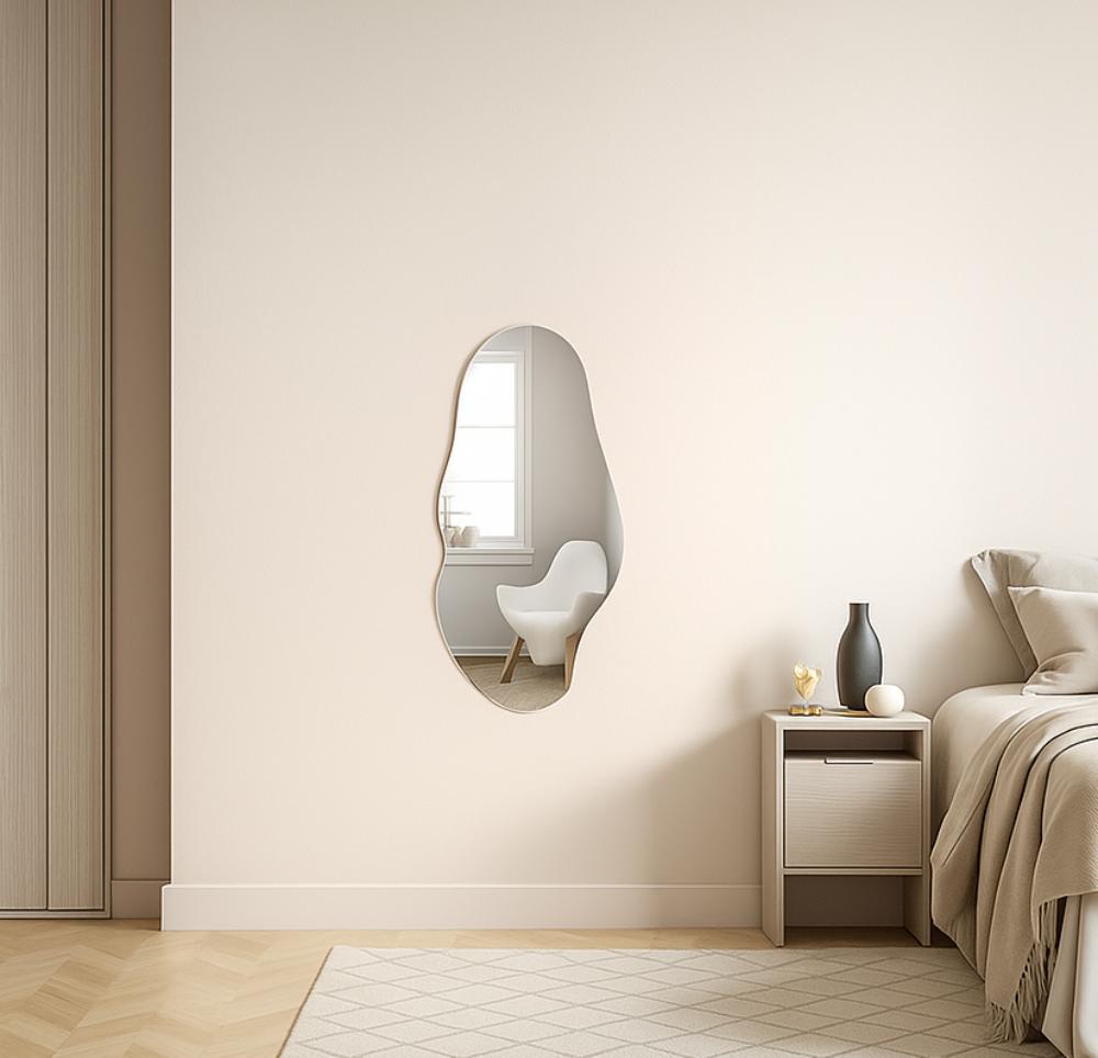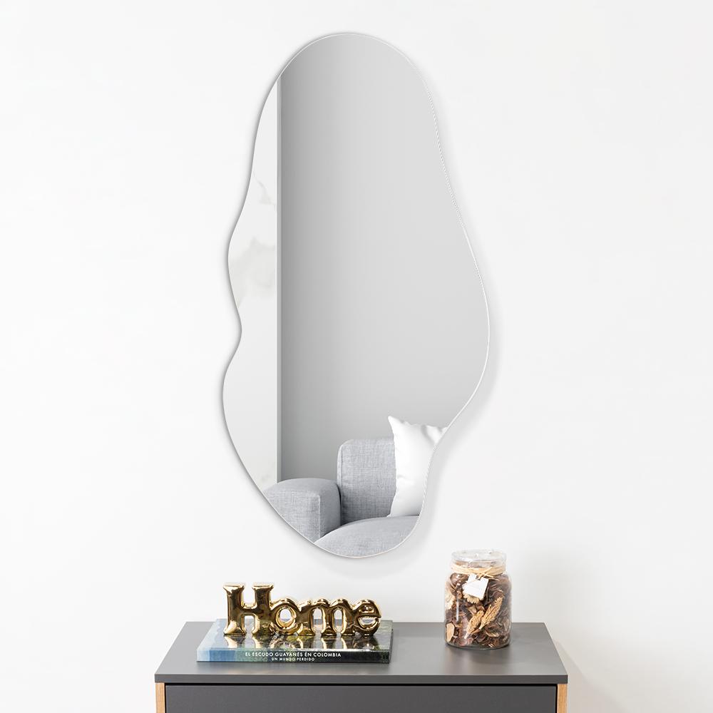 Espejo con diseño moderno que aporta estilo y amplitud a cualquier espacio. Su forma asimétrica de 100cm de alto x 50cm de ancho lo convierte en una pieza única para dormitorios, salas o recibidores. Elaborado en vidrio de alta calidad, combina elegancia y funcionalidad, ideal para quienes buscan un toque contemporáneo en su hogar