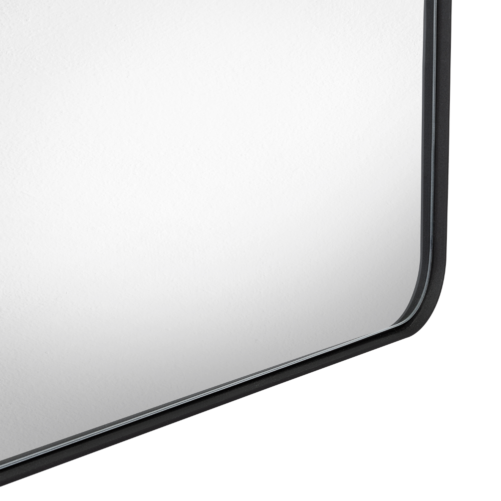Con bordes redondeados y marco metálico; cuenta con chaflán para su instalación horizontal