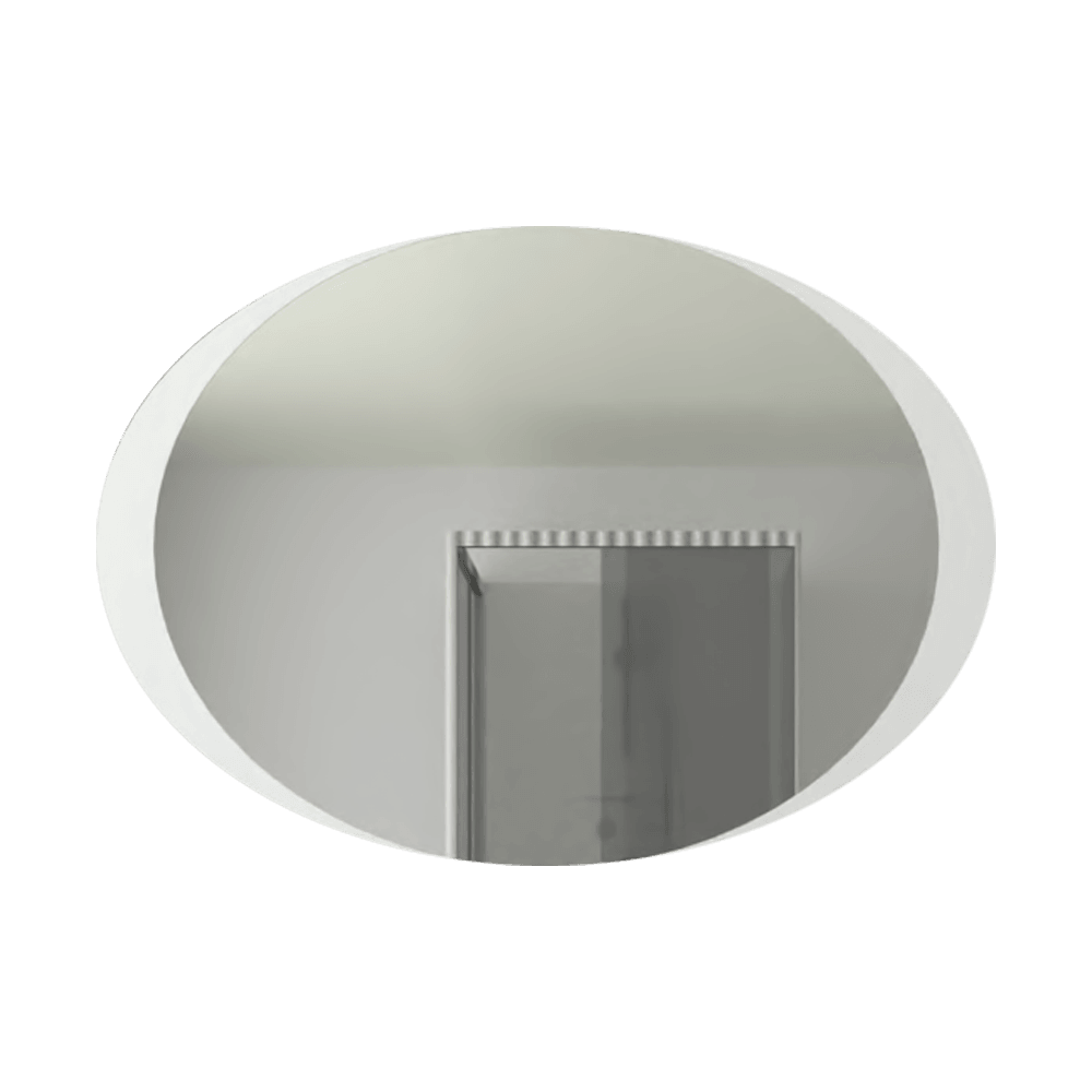 Espejo ovalado con diseño sandblasting, ensamble a la pared con chaflan. Incluye herrajes para su instalación.