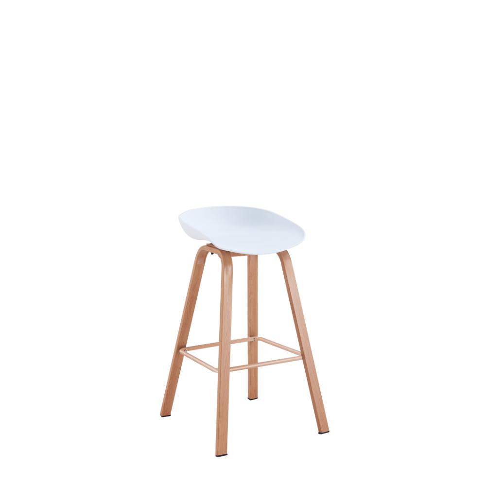 Silla Bar x2, con diseño moderno, comodo asiento y patas en metal color madera.