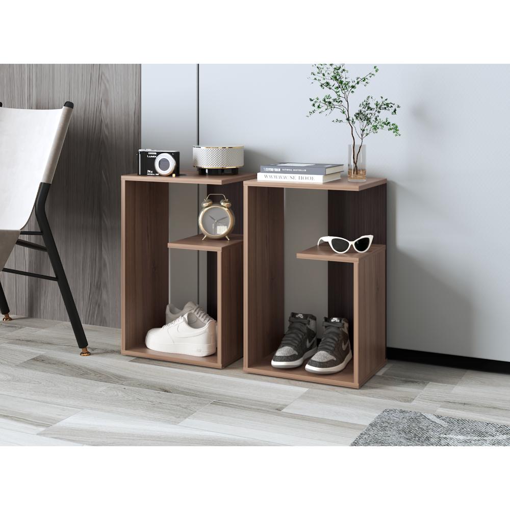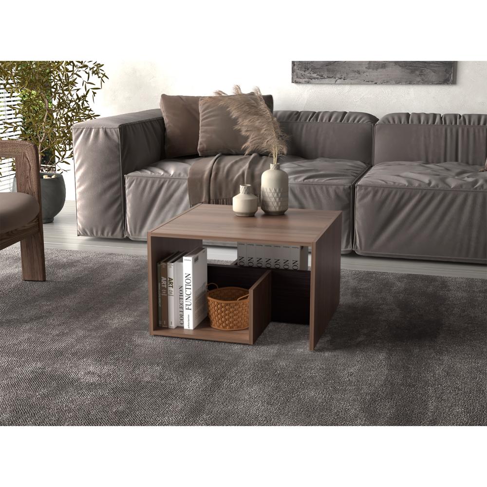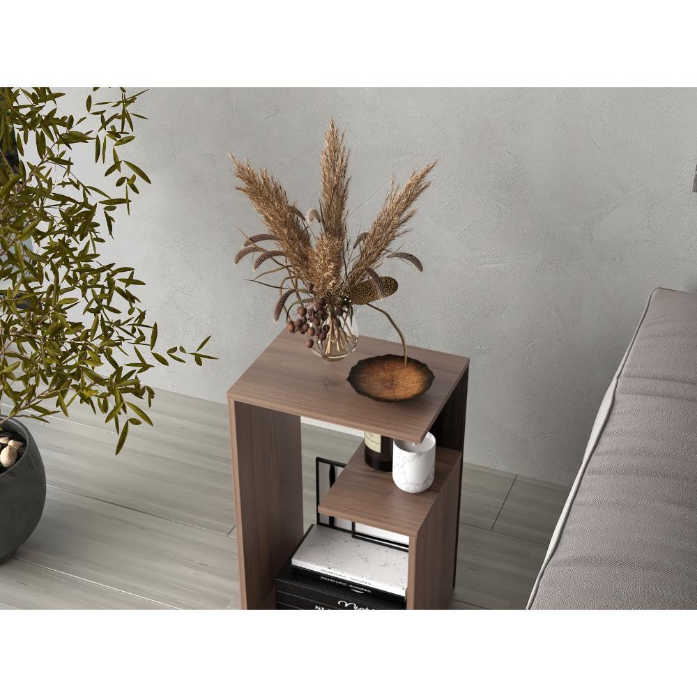 Mesa Auxiliar Evert, Café Expreso y Wengue Kronos, con diseño moderno y espacio para ubicar objetos ZF