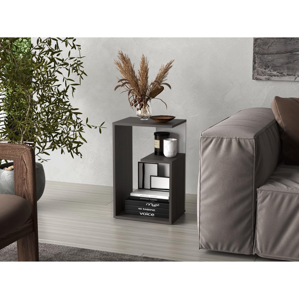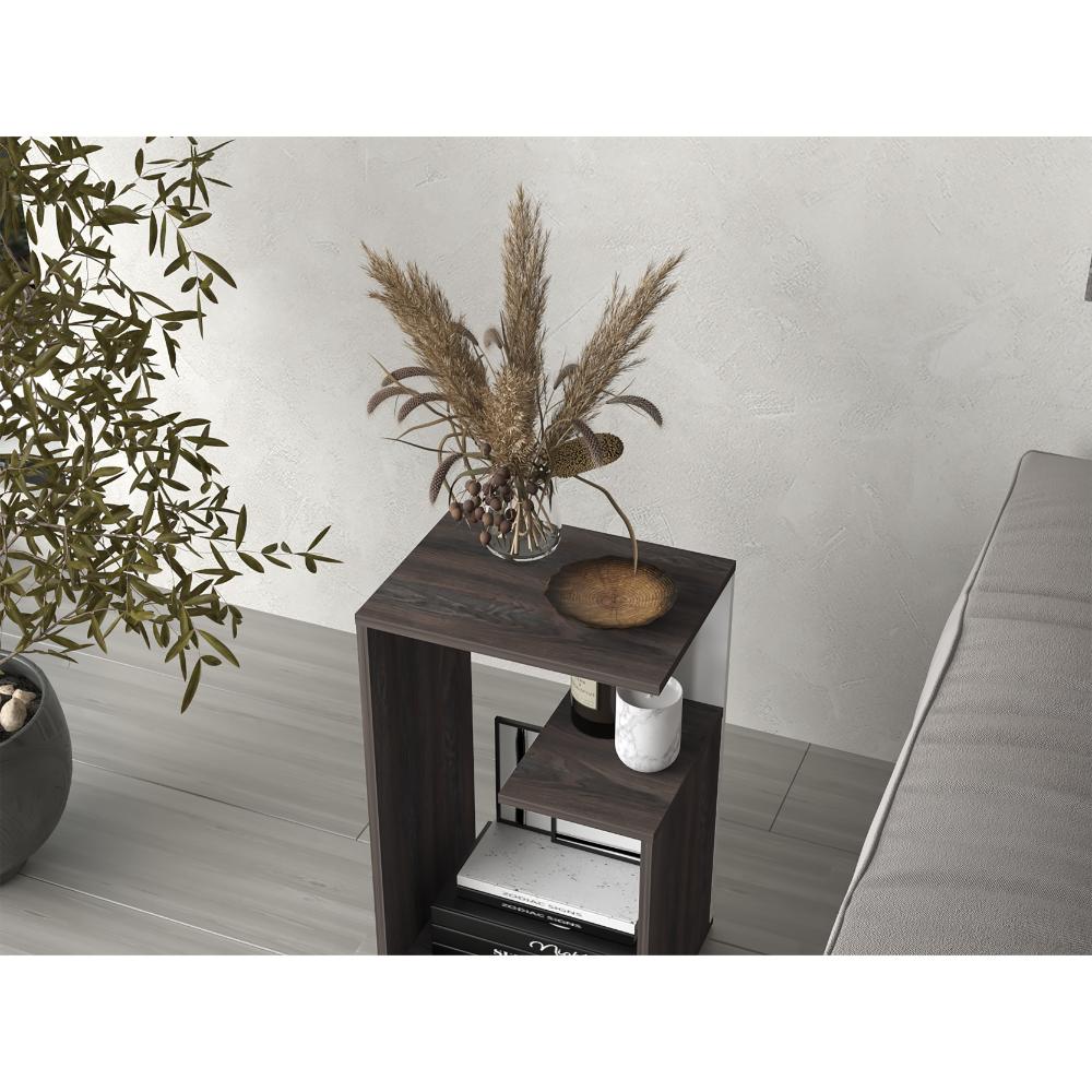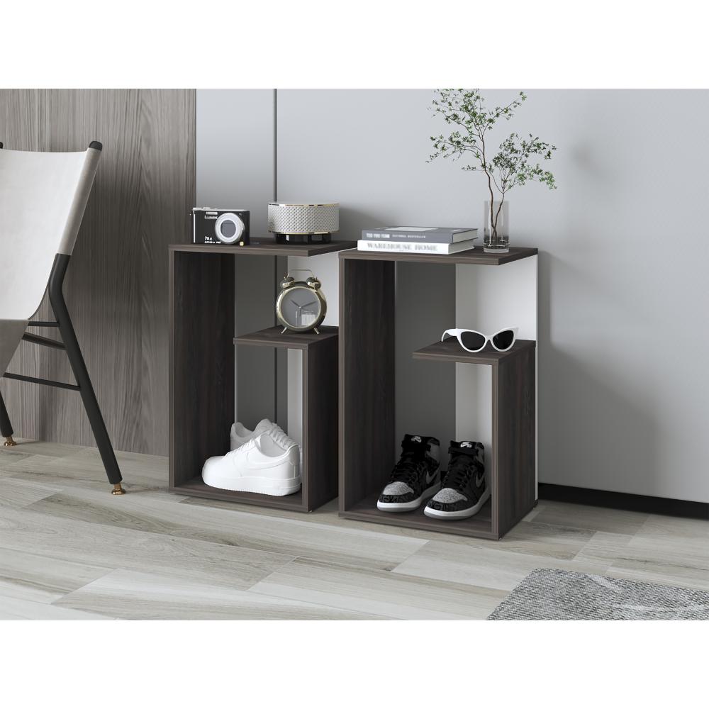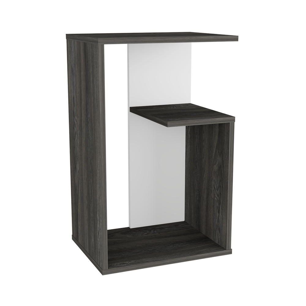 Mesa Auxiliar Evert, Grafito y Blanco, con diseño moderno y espacio para ubicar objetos