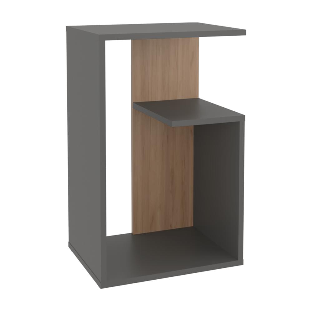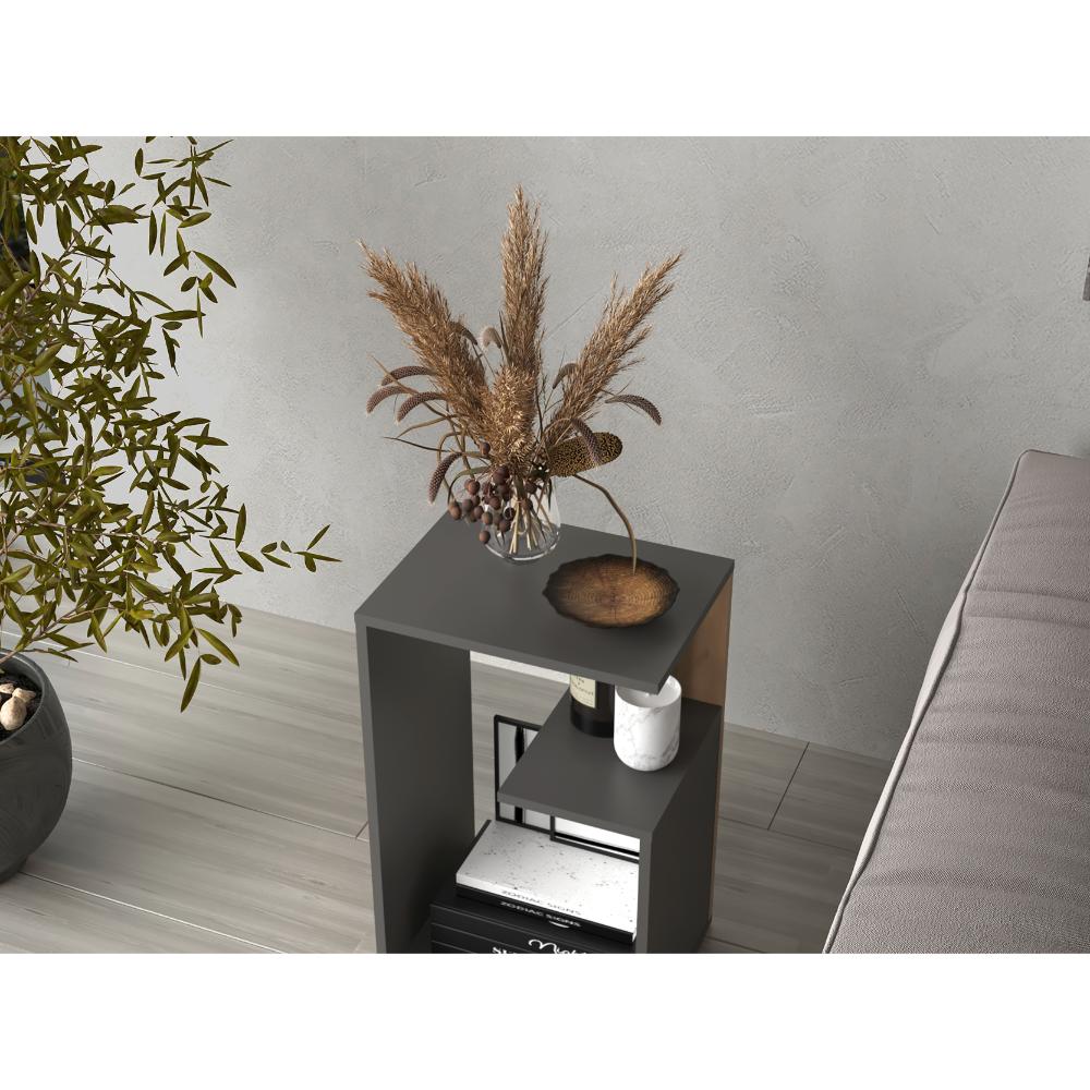Mesa Auxiliar Evert, Plata Oscuro y Fresno Europeo, con diseño moderno y espacio para ubicar objetos ZF