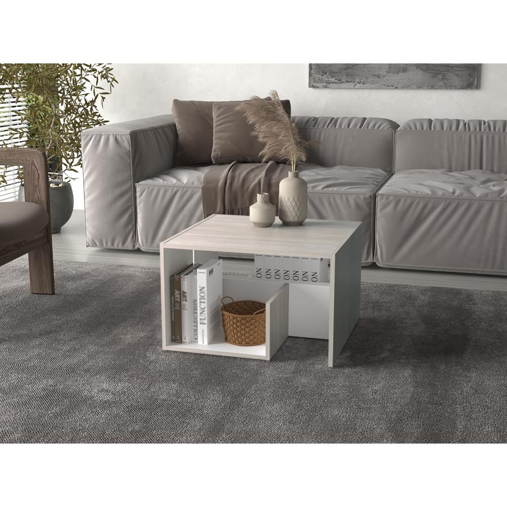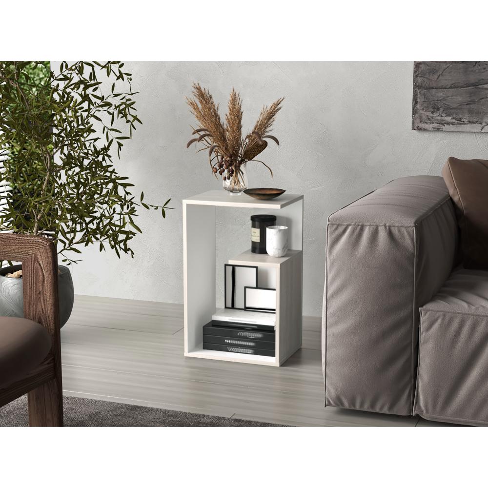 Mesa Auxiliar Evert, Tivoli y Blanco Duqueza, con diseño moderno y espacio para ubicar objetos