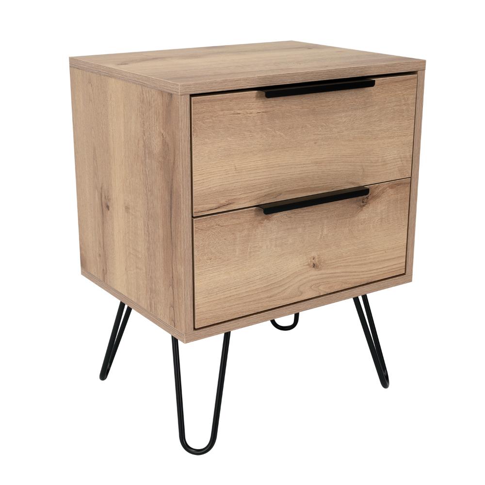 Mesa de Noche Ali, Café Claro y Wengue, con Dos Cajoneras ZF