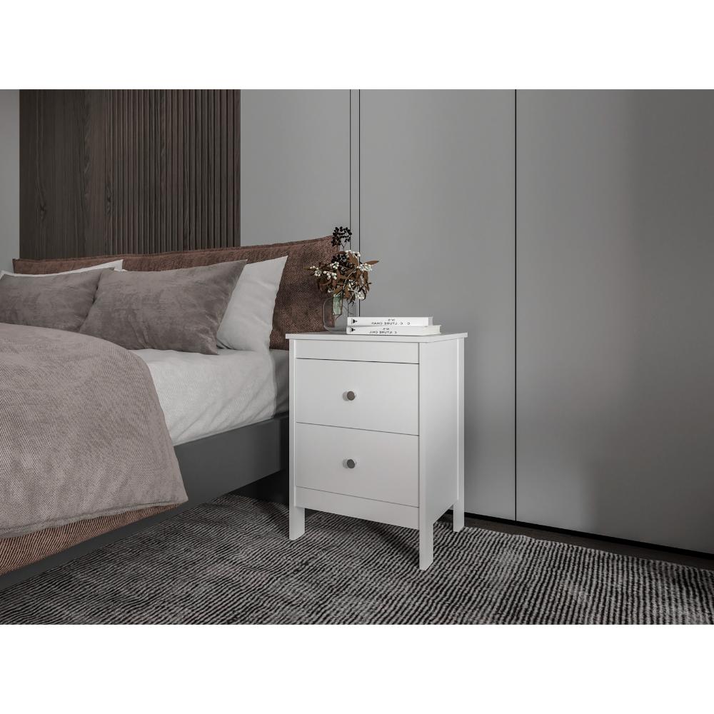 Mesa de Noche Camil, Blanco Duqueza, con espacio para colocar objetos decorativos ZF