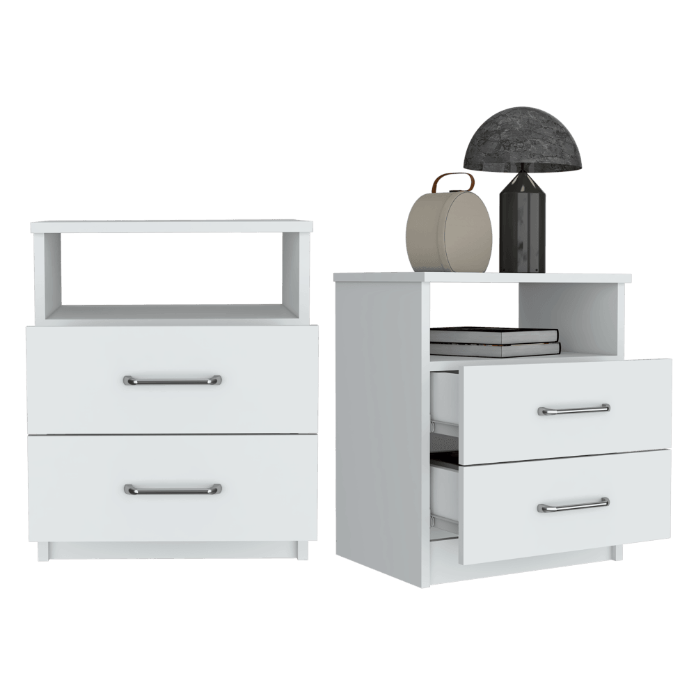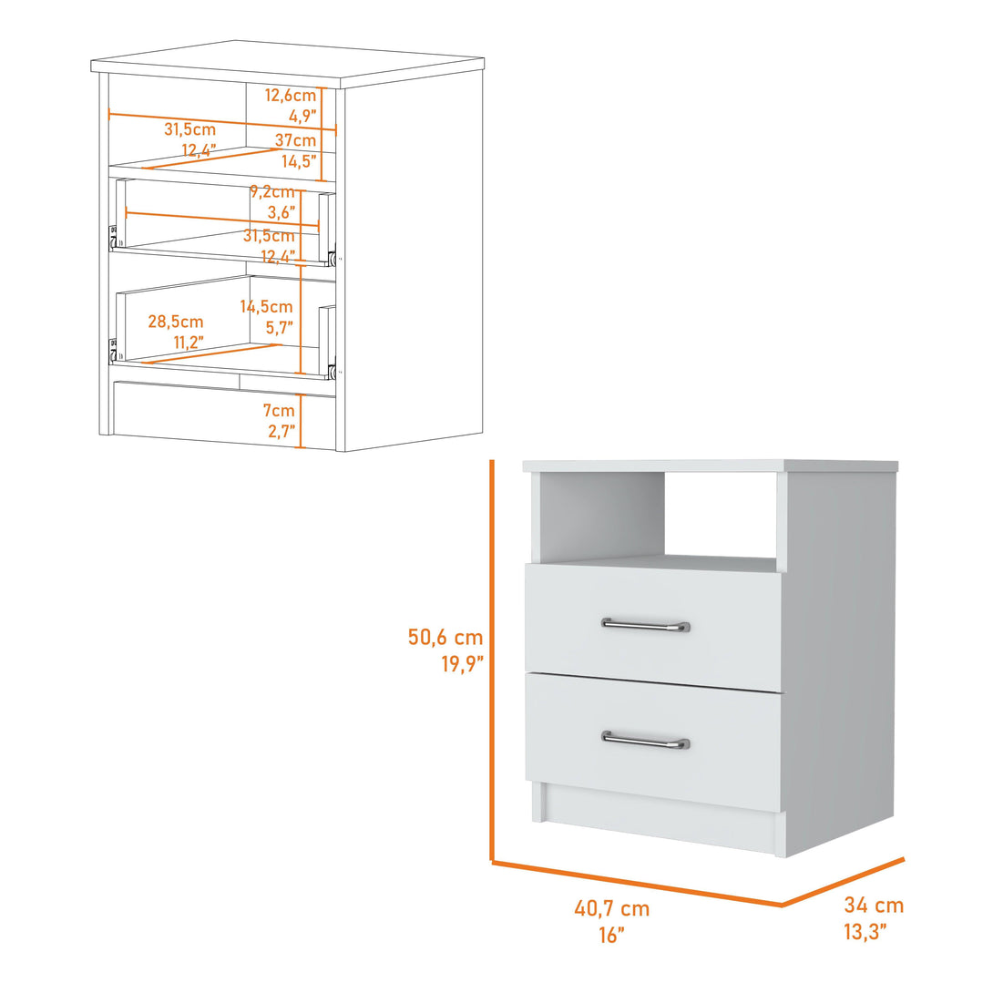 Mesa de Noche Cantabria, Blanco, con Dos Cajones ZF X2