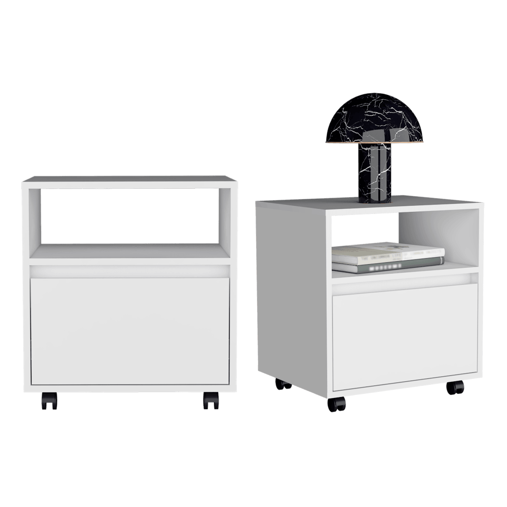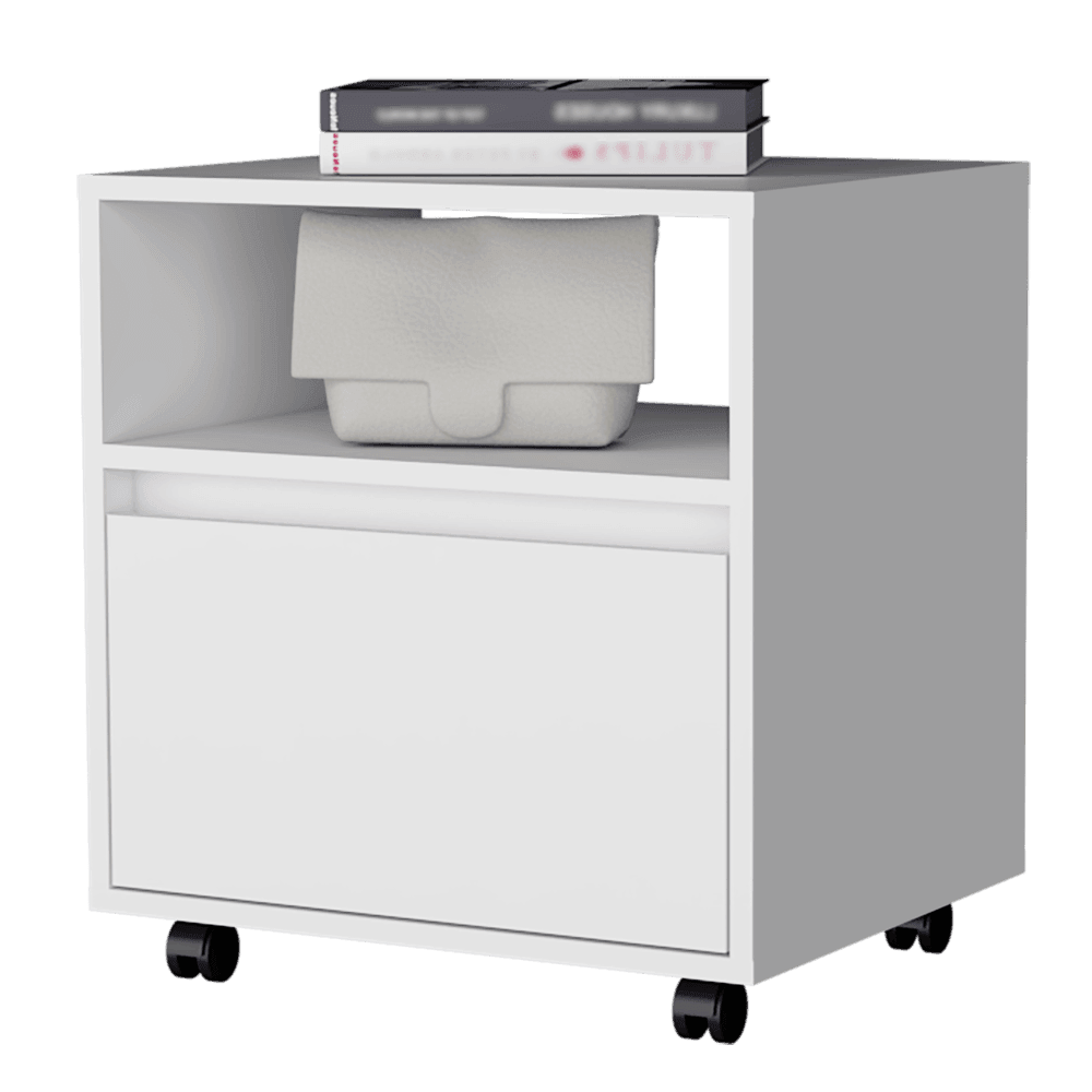Mesa de Noche Cruella, Blanco Vainilla, con Un Cajón Deslizable X2