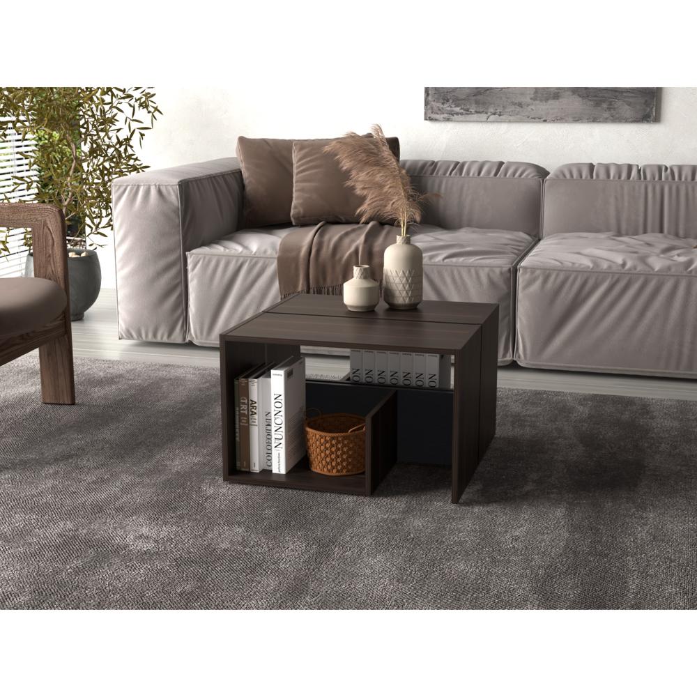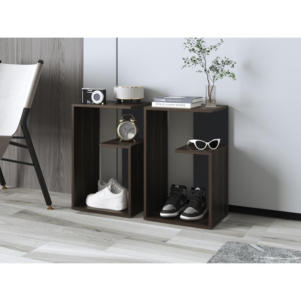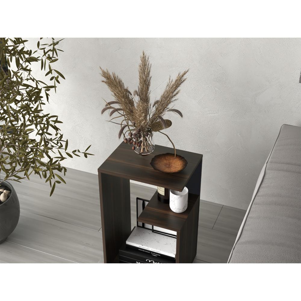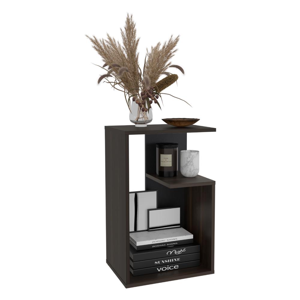 Mesa de Noche Evert, Caoba y Wengue, con diseño moderno y espacio para ubicar objetos ZF