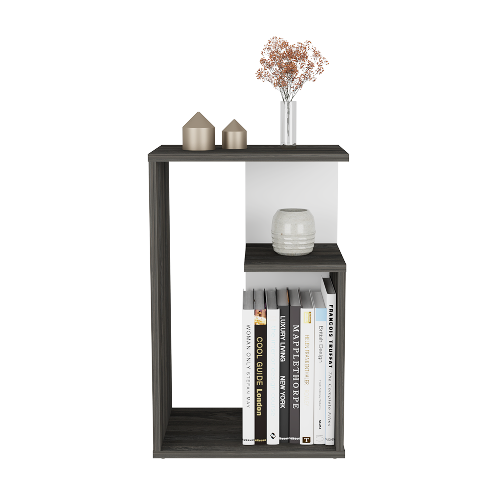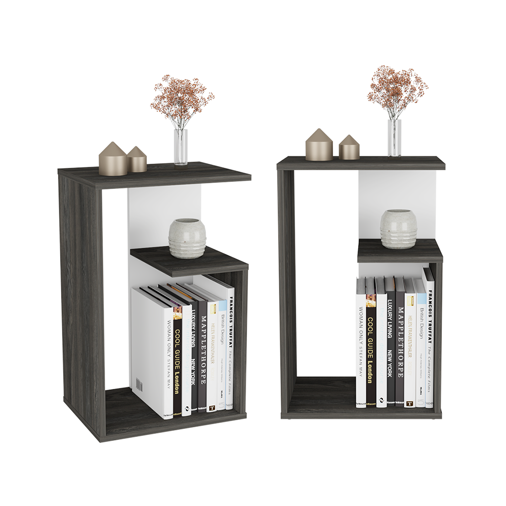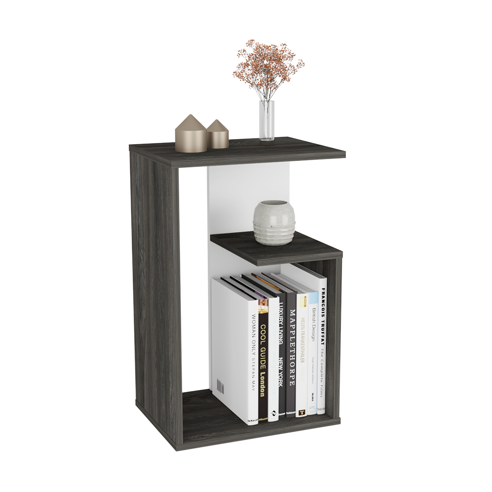 Mesa de Noche Evert, Grafito y Blanco, con diseño moderno y espacio para ubicar objetos X2