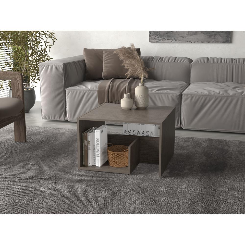 Mesa Auxiliar, con diseño moderno y espacio para objetos decorativos, libros, discos Lp y otros.