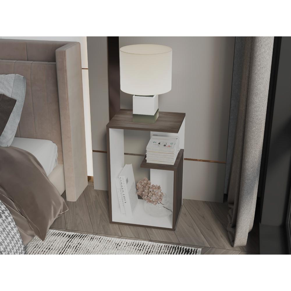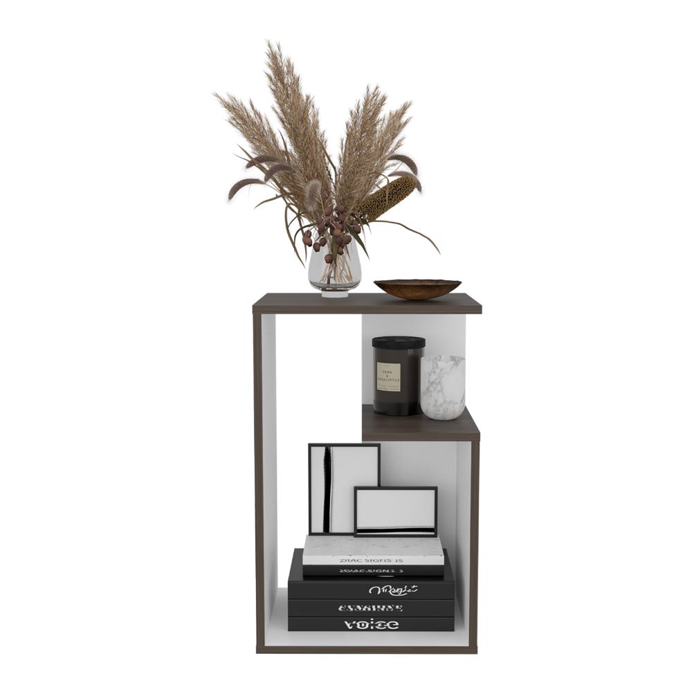Mesa de Noche Evert, Siena y Blanco Duqueza, con diseño moderno y espacio para ubicar objetos