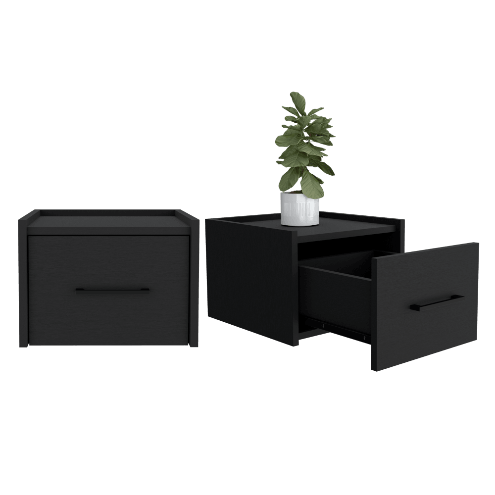 Mesa de Noche Flotante, con espacio para colocar objetos decorativos, diseño moderno, un cajón.