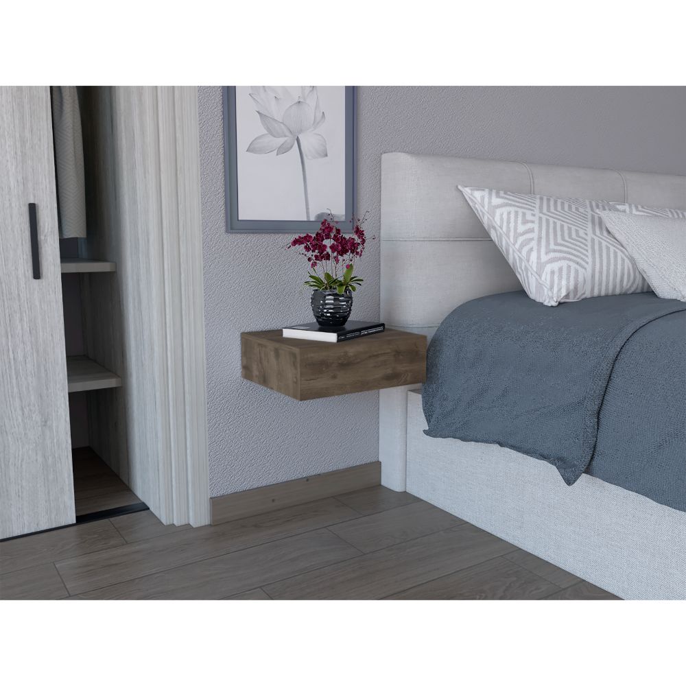 Mesa de Noche Flotante, de fácil instalación y armado, un cajón, diseño minimalista, superficie para ubicar objetos.