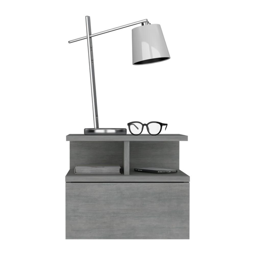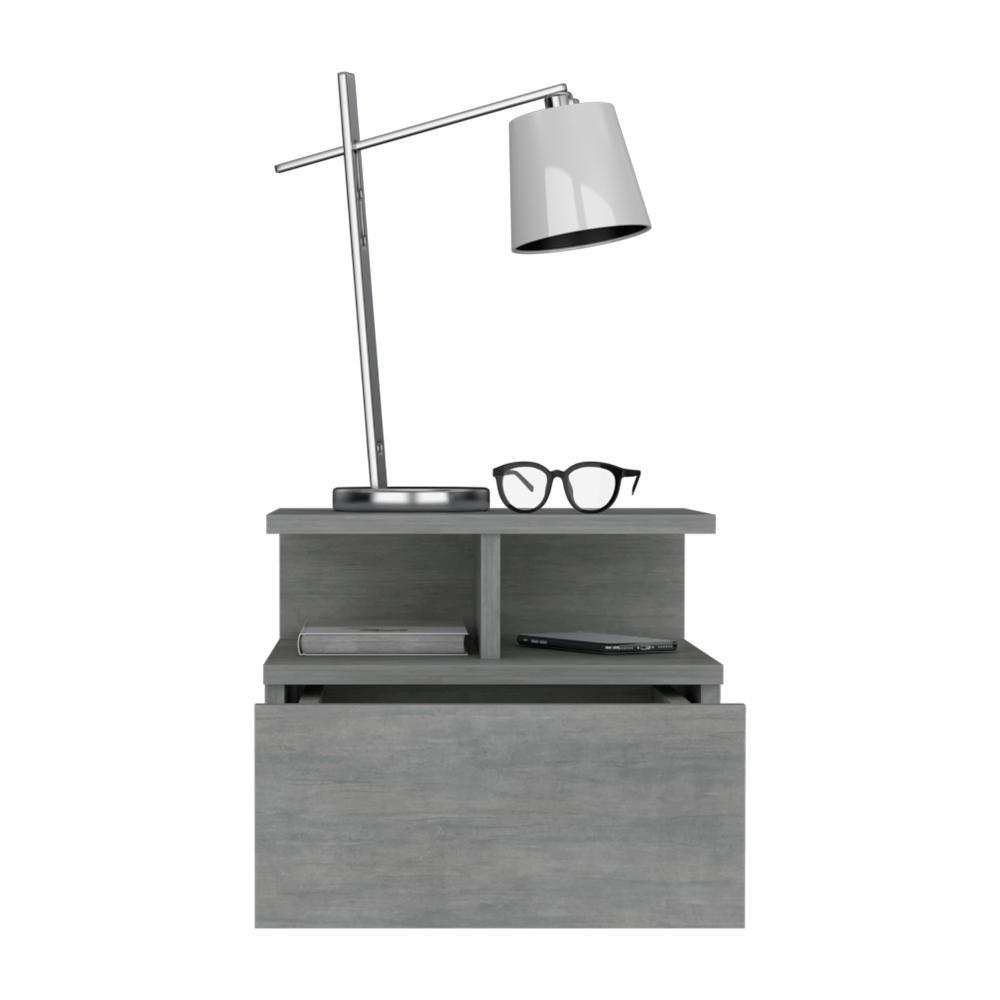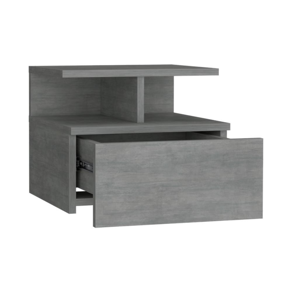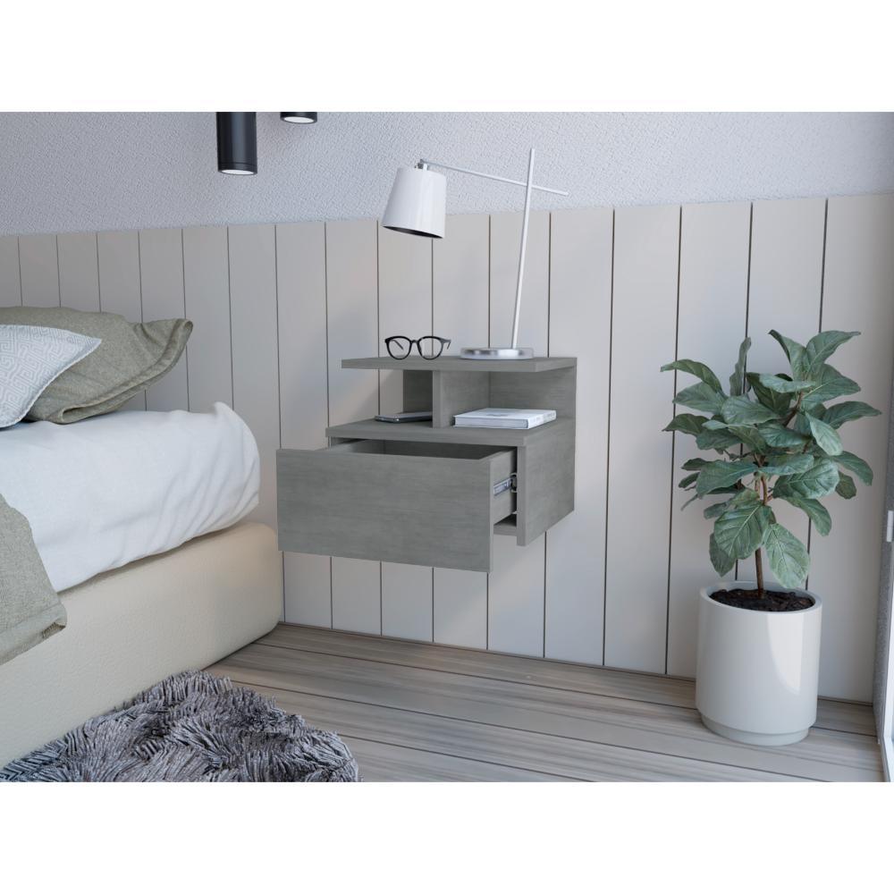 Mesa de Noche Flotante, con un cajón, diseño moderno, y division de dos entrepaños