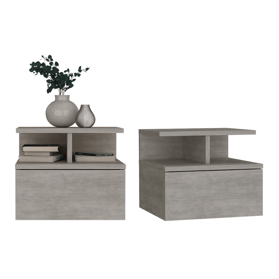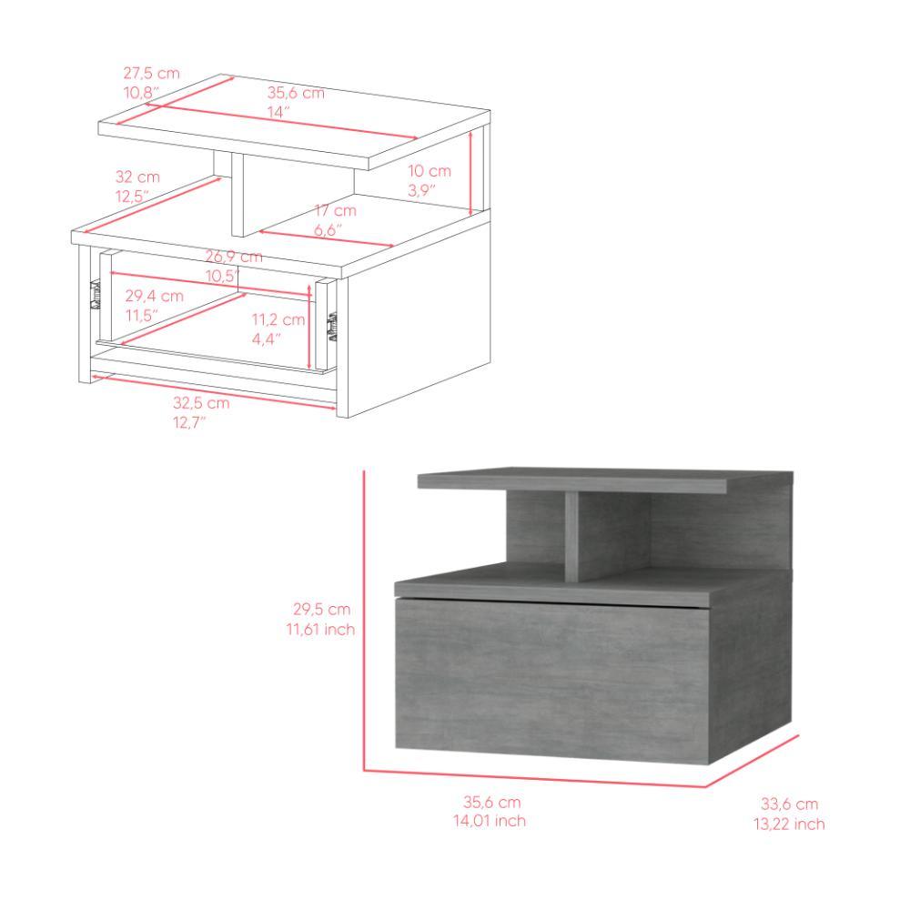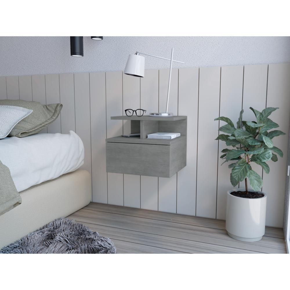 Mesa de Noche Flotante, con un cajón, diseño moderno, y division de dos entrepaños
