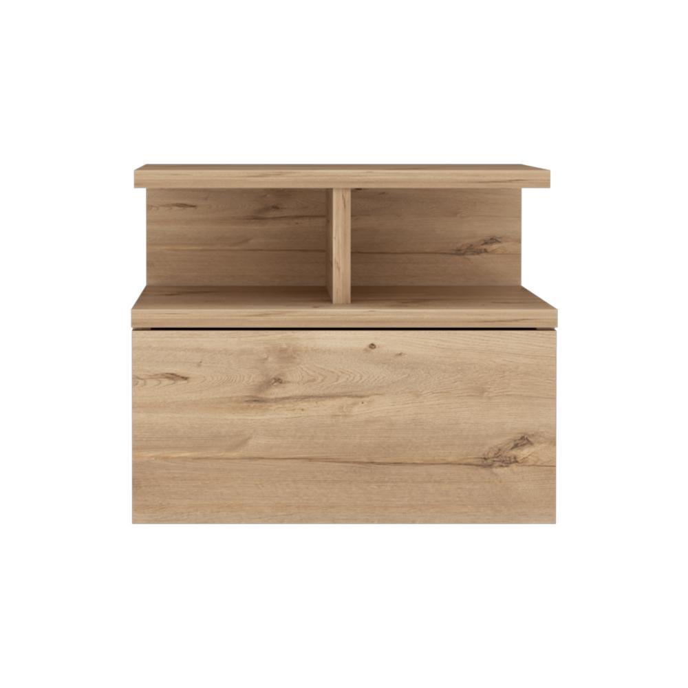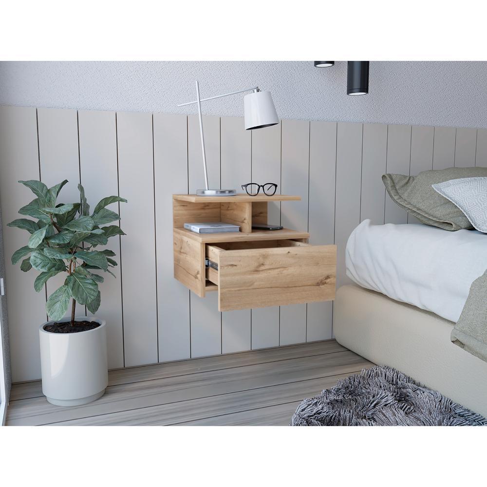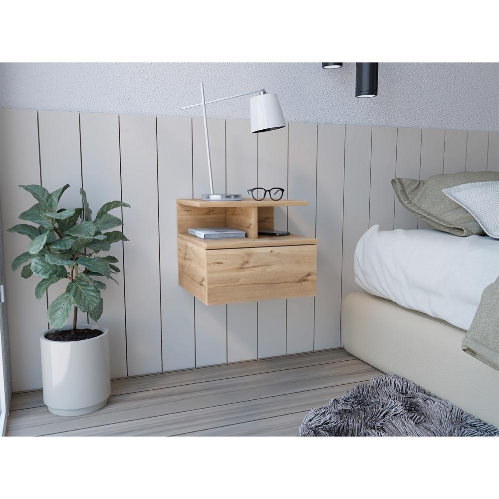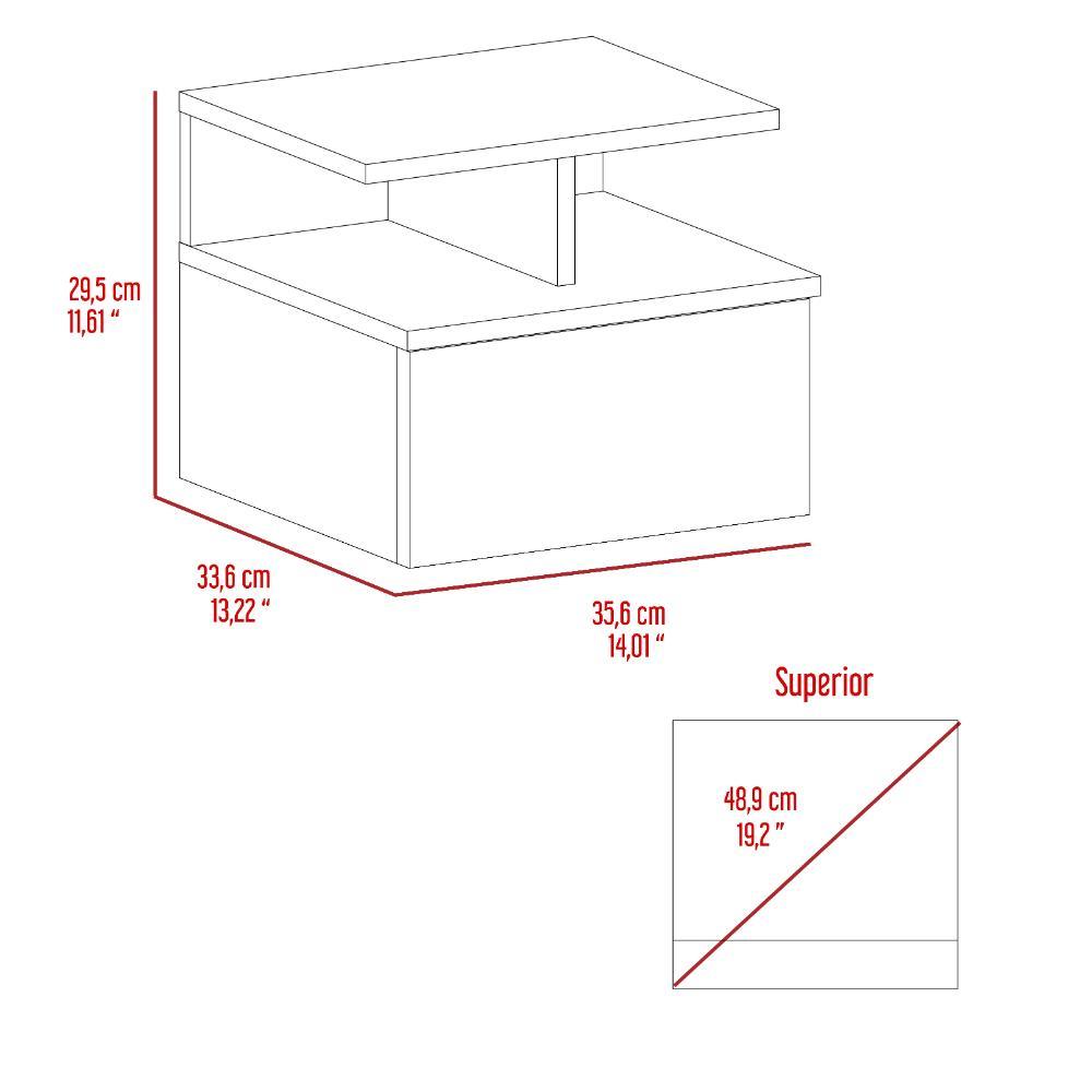 Mesa de Noche Flotante, con un cajón, diseño moderno, y division de dos entrepaños
