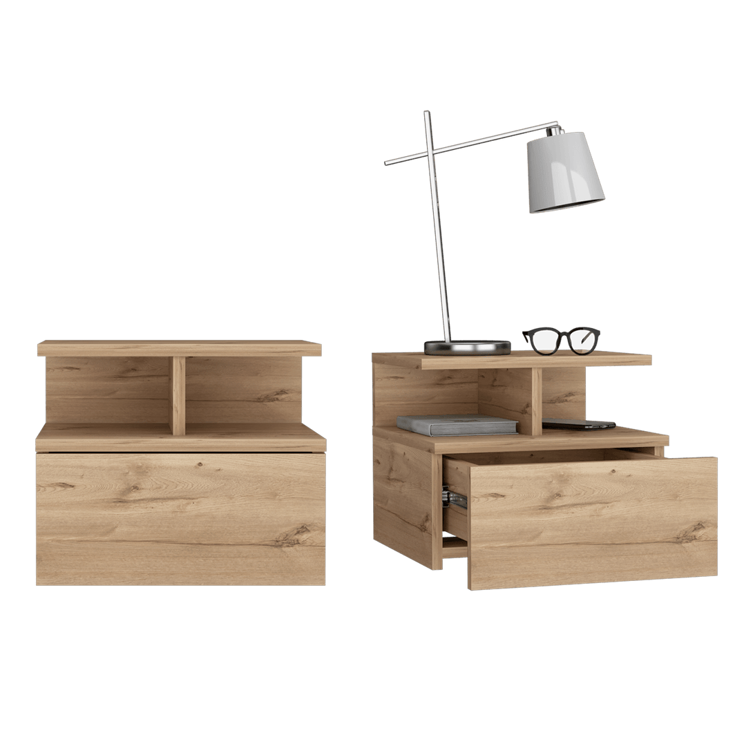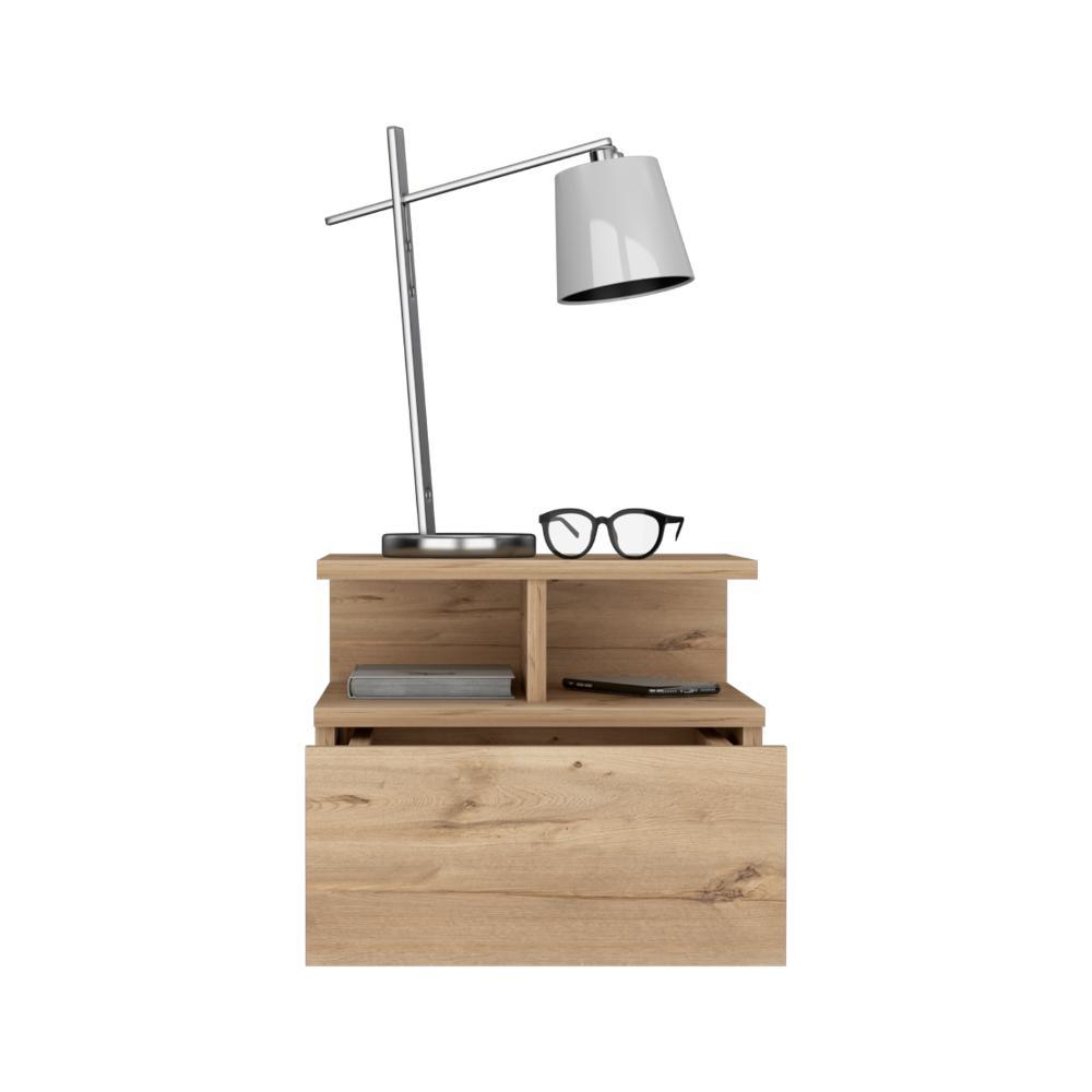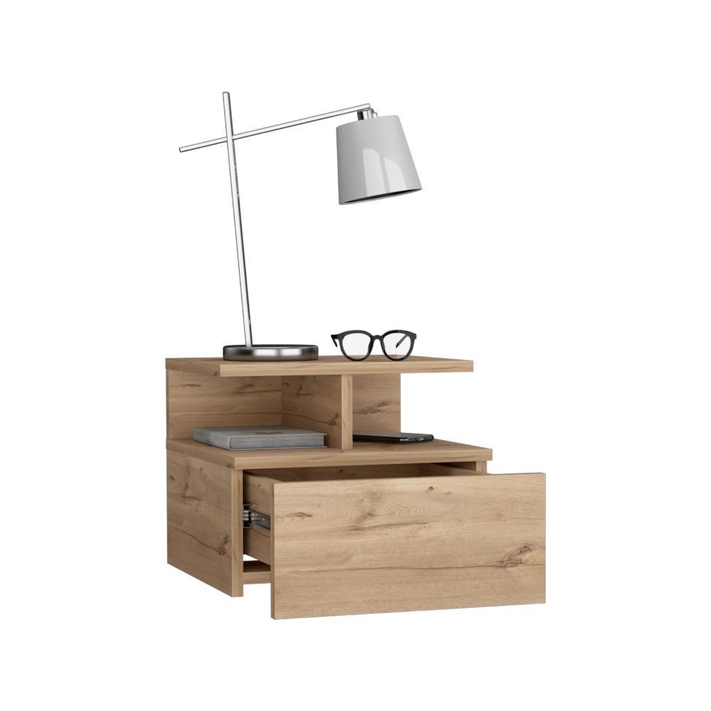 Mesa de Noche Flotante, con un cajón, diseño moderno, y division de dos entrepaños