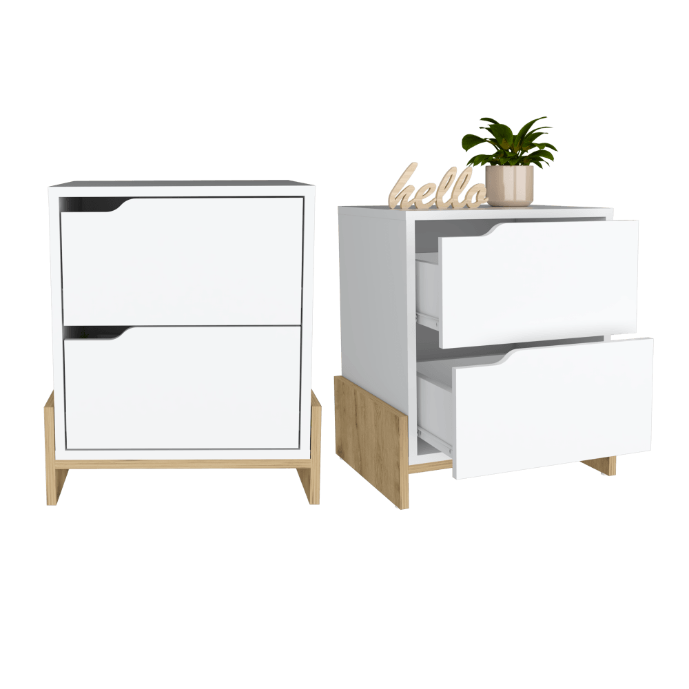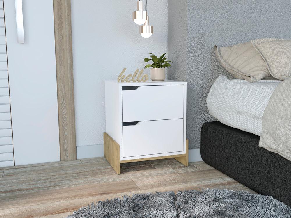 Mesa de Noche Galanto, Blanco Nevado y Macadamia, con Una Puerta Batiente ZF X2