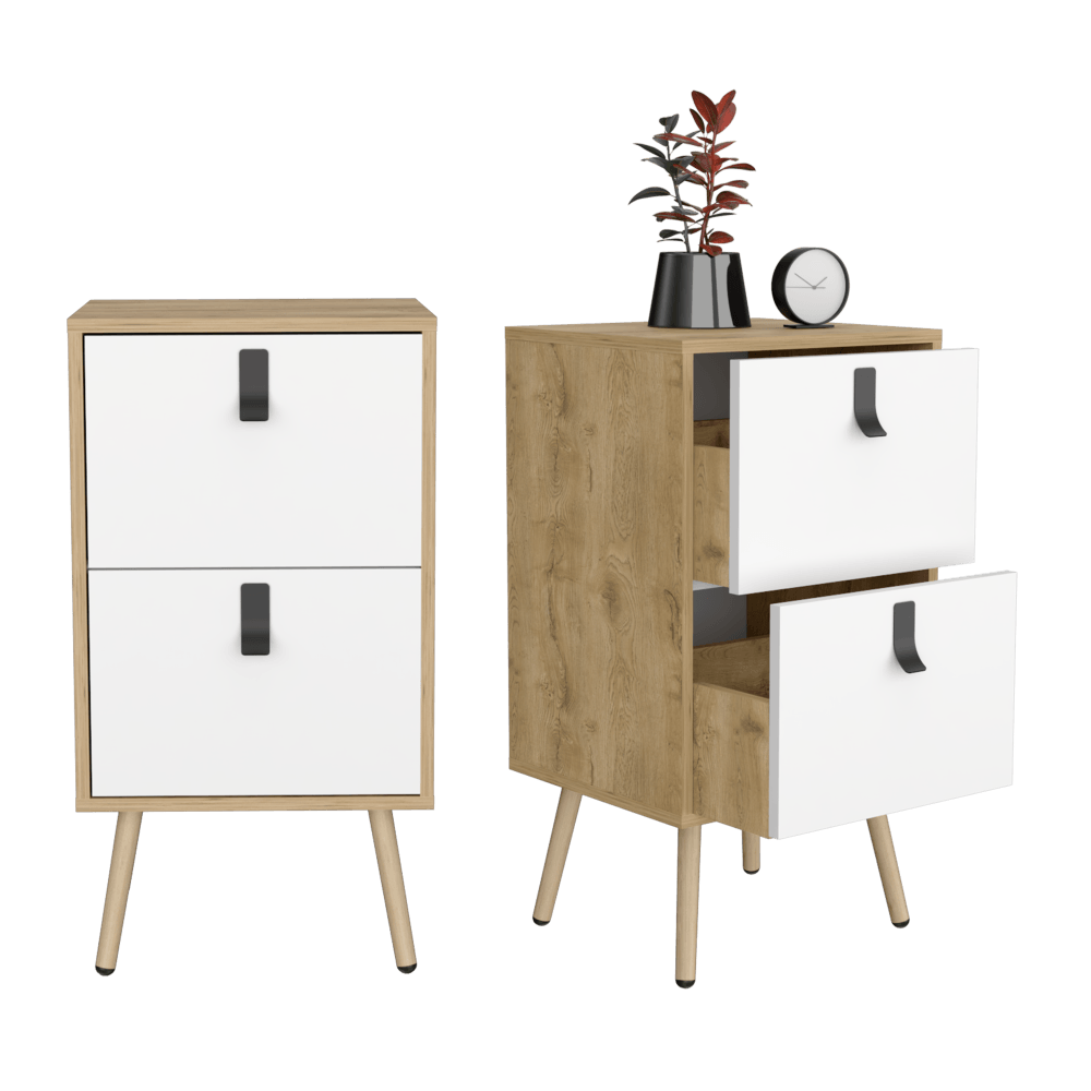 Mesa de Noche Huna, Blanco y Macadamia, Con Dos Cajones X2