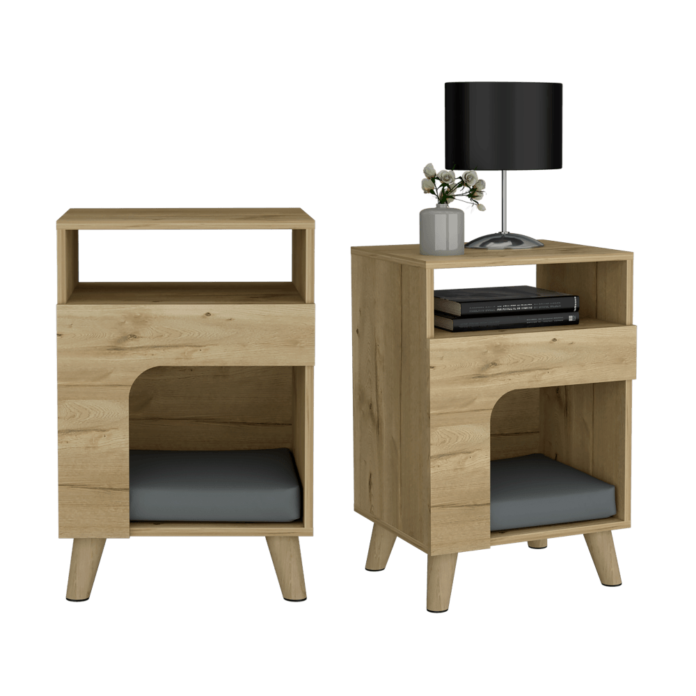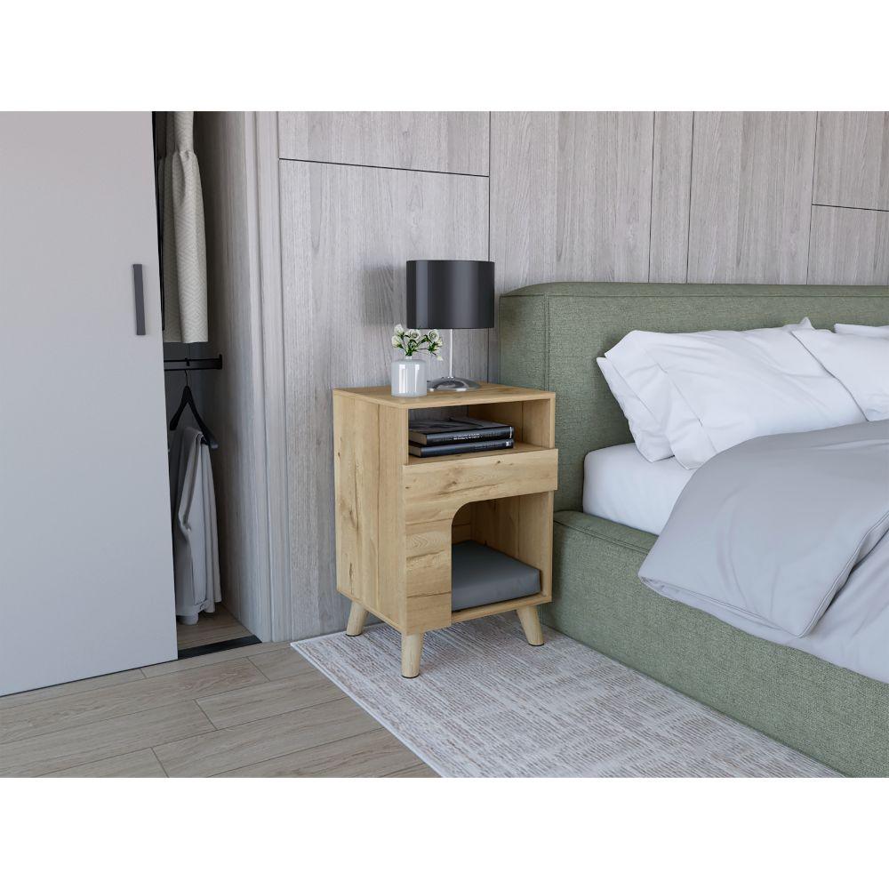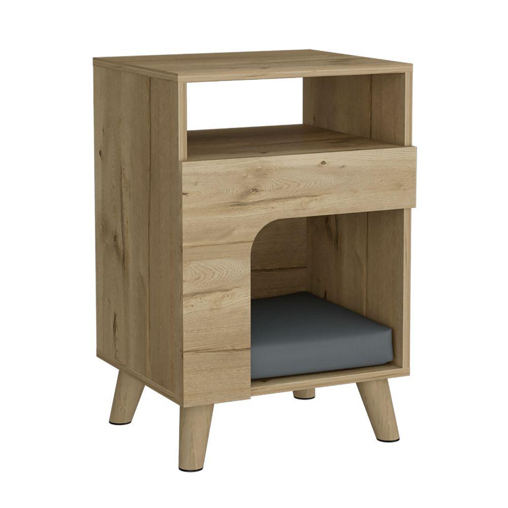 Mesa de Noche Yersi, Café Claro, con espacio para tu mascota X2