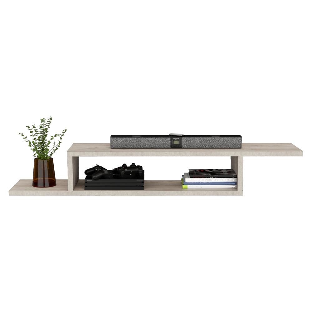 Mesa de TV Flotante, con superficie para objetos decorativos, equipos de audio y video.