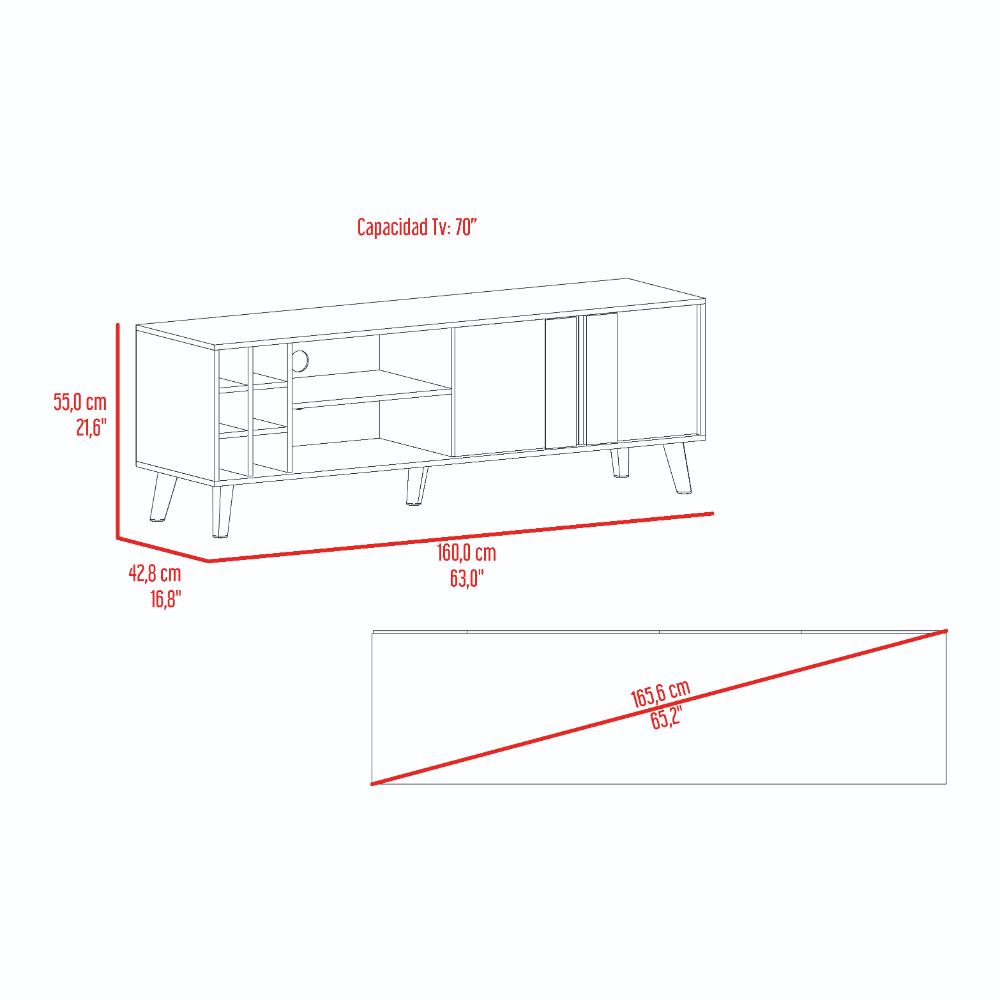 Mesa para TV de 65'' con dos puertas abatibles, diseño moderno, fácil armado, patas metálicas