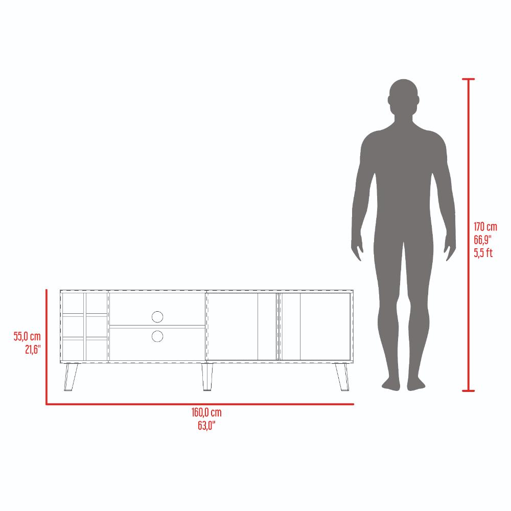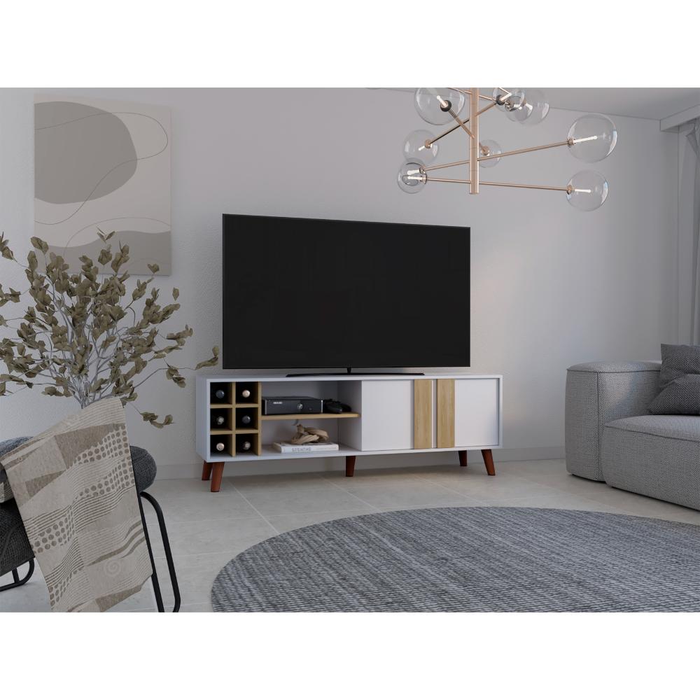 Mesa para TV Lannez, Blanco Duqueza y Fresno Europeo, con dos puertas abatibles 65"