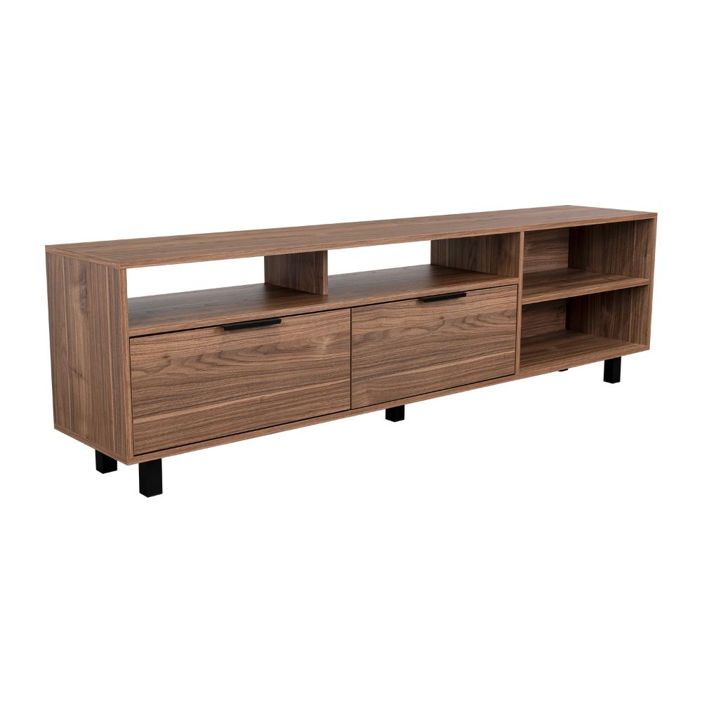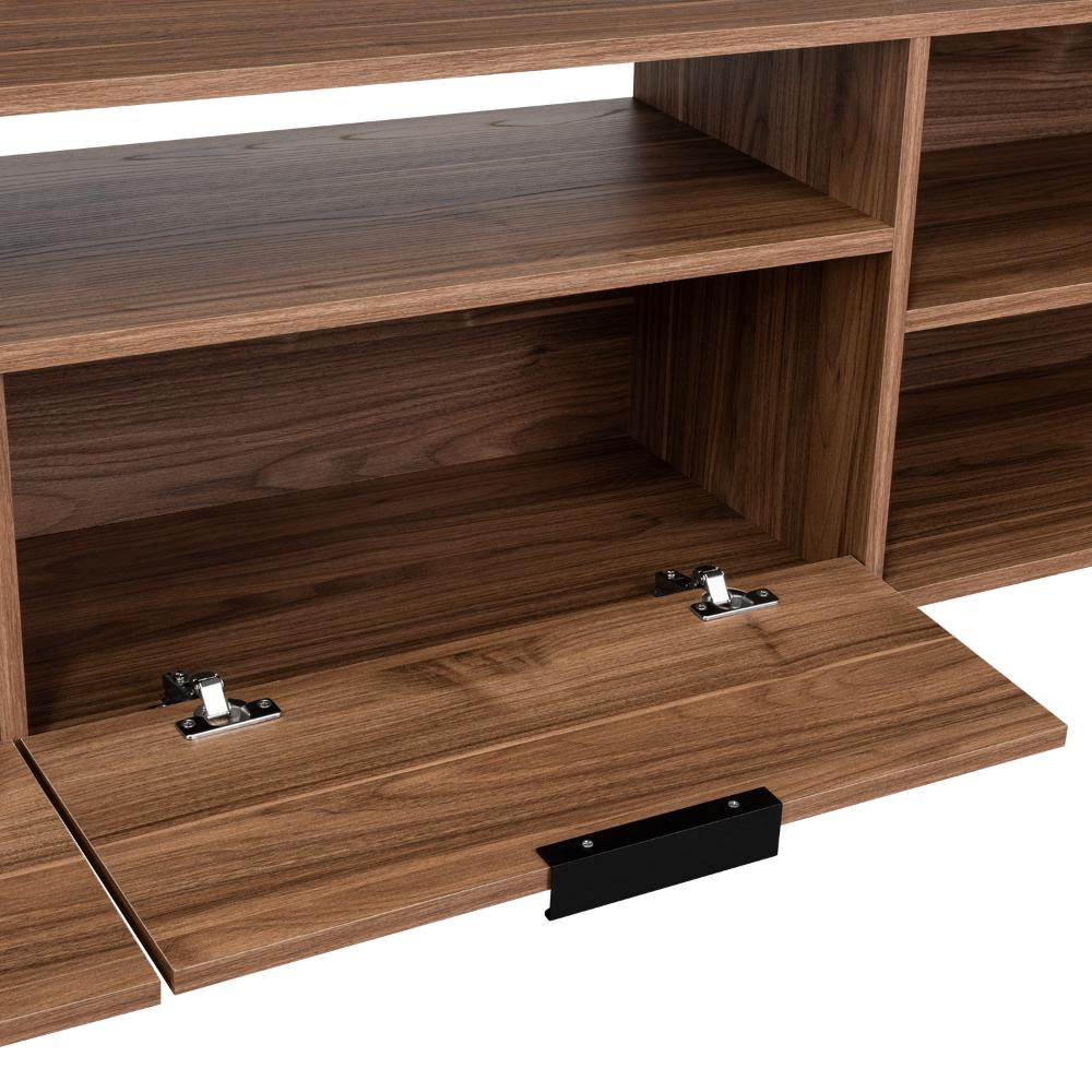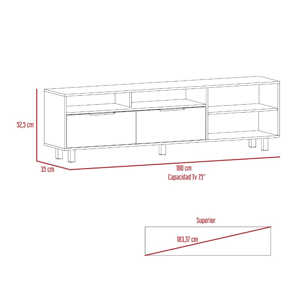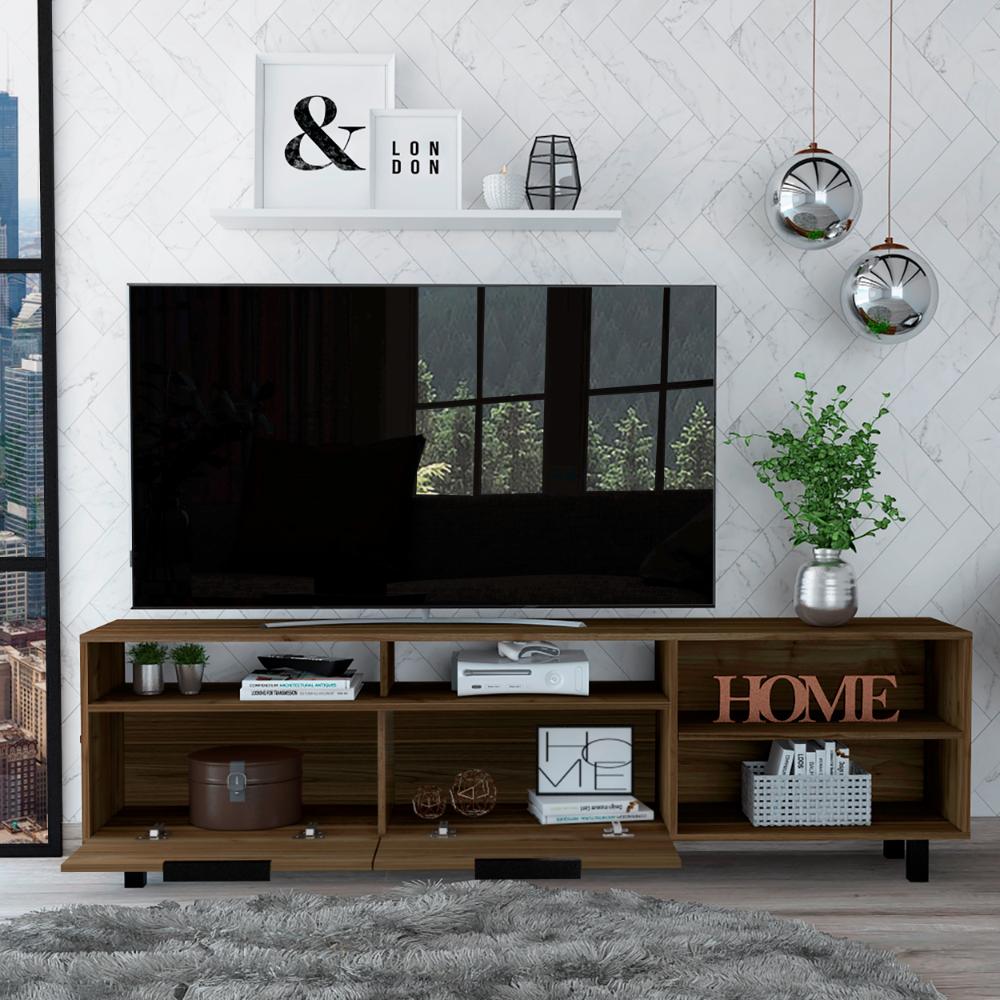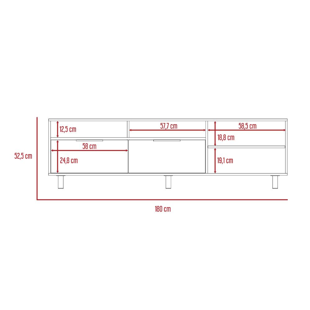Mesa para TV, con diseño moderno en combinación de color moderado y color plano, espacio central para TV hasta 75", entrepaños para colocar objetos decorativos, amplios compartimientos para equipo de audio y video.