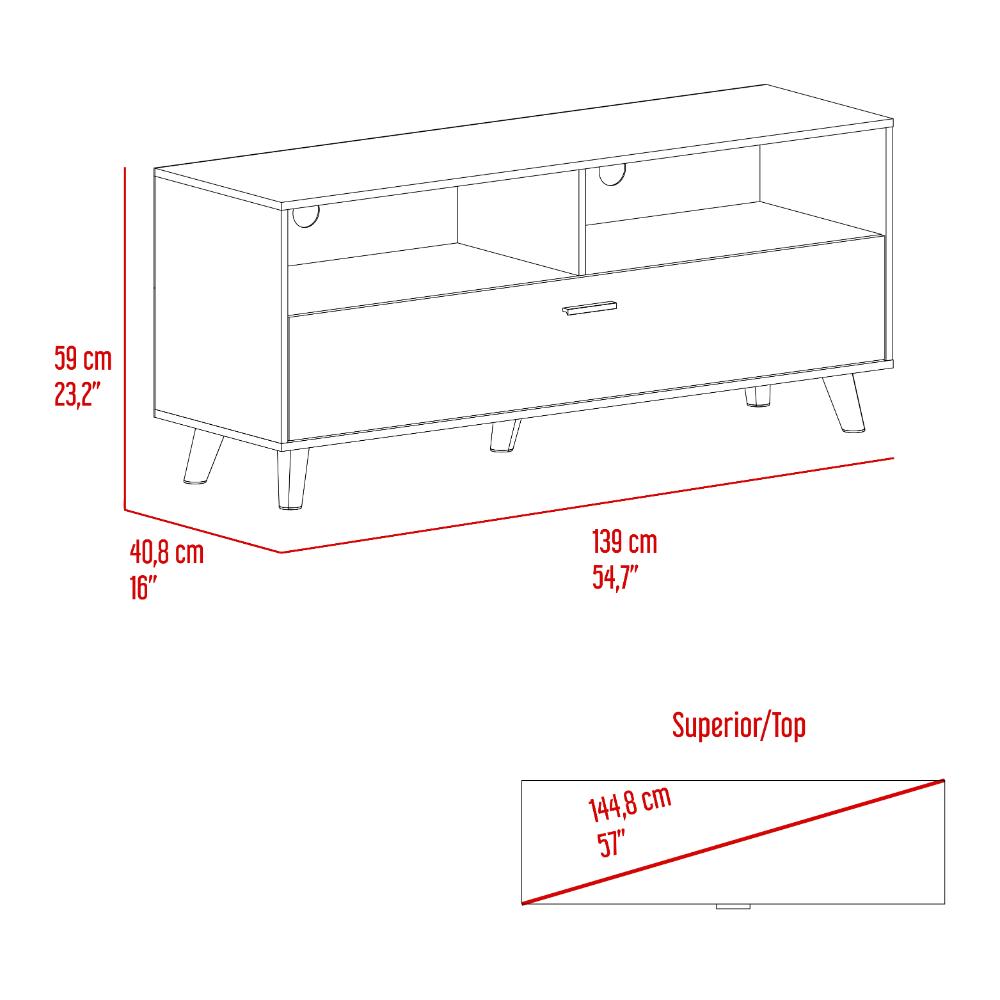 Mesa para TV con espacio para televisor hasta 60" 1 Puerta abatible con apertura hacia abajo, y con espacio practico de almacenamiento