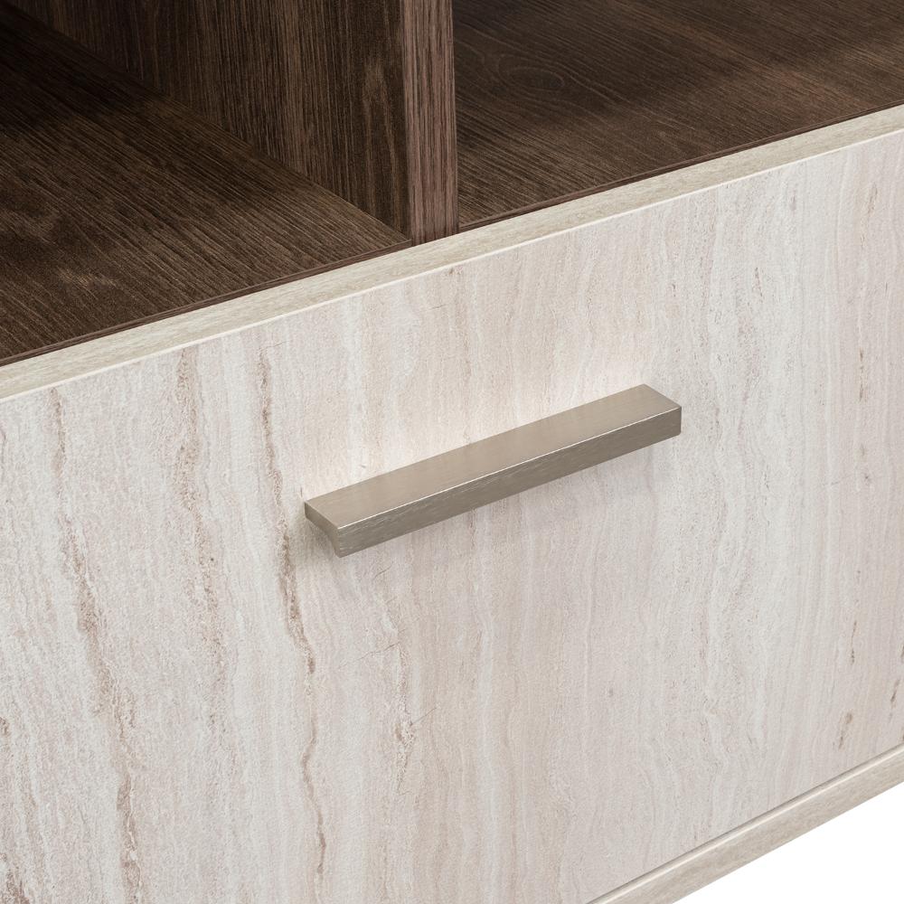 Elaborado en Madera aglomerada MDP, recubierta con láminas melamínicas de excelente calidad, en color Trivoli y Milan.