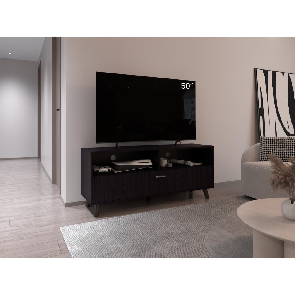 Mesa para TV con espacio para televisor hasta 60" 1 Puerta abatible con apertura hacia abajo, y con espacio practico de almacenamiento