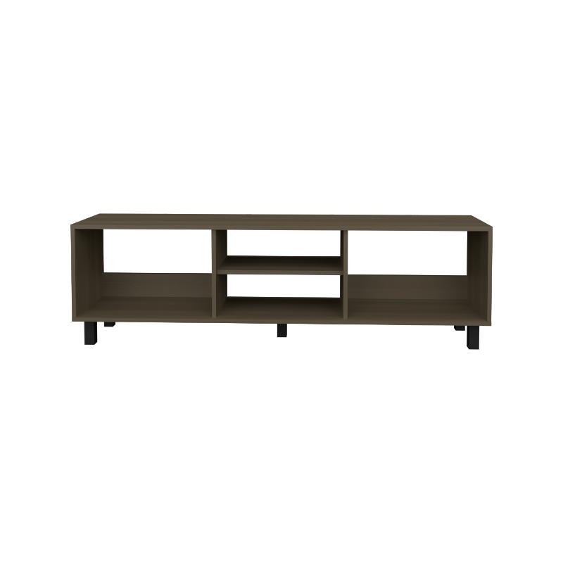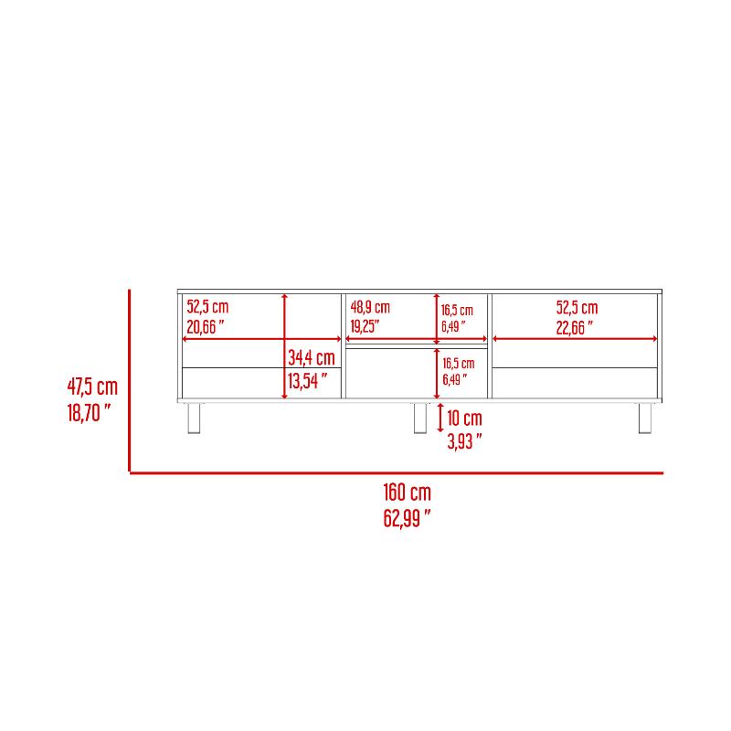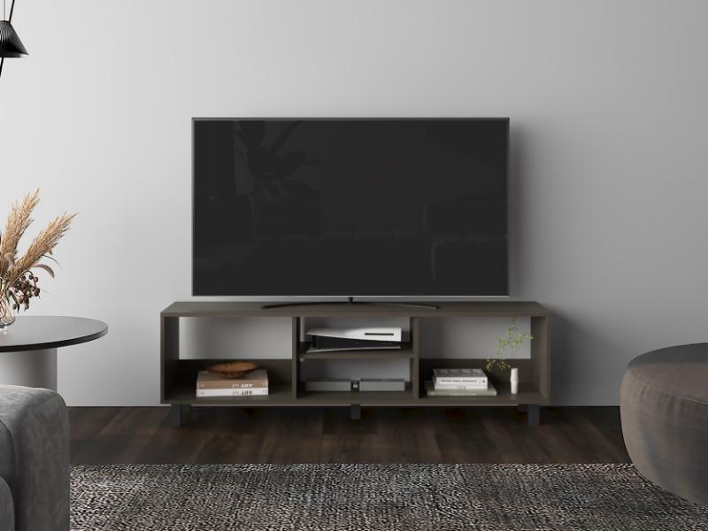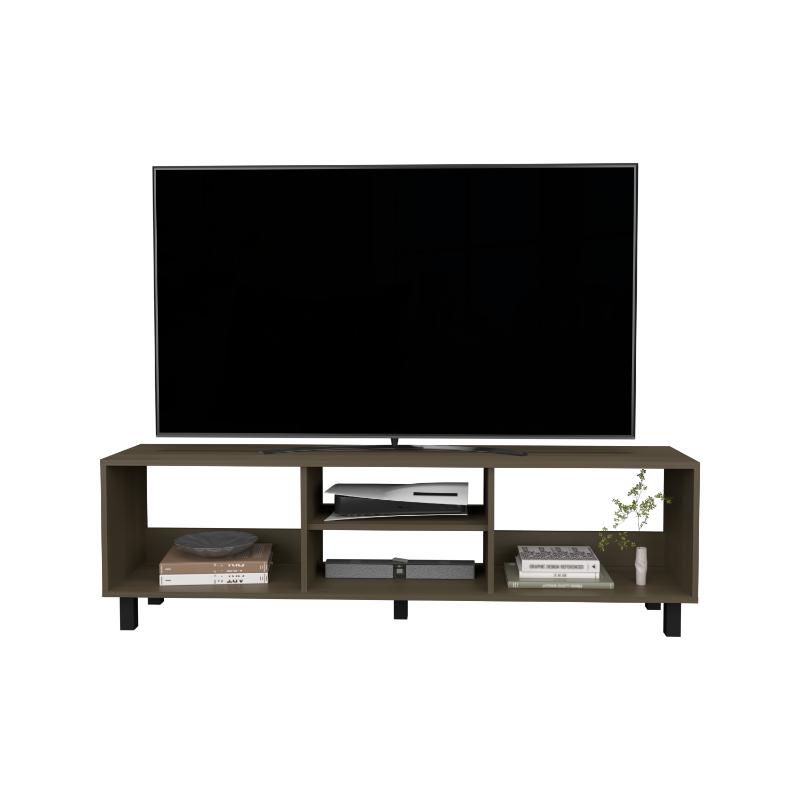Mesa para TV de 70". cuenta con un entrepaño y cuatro compartimentos para almacenar objetos.