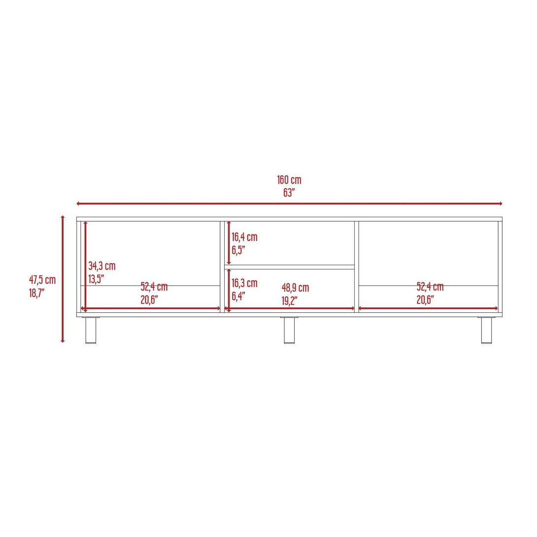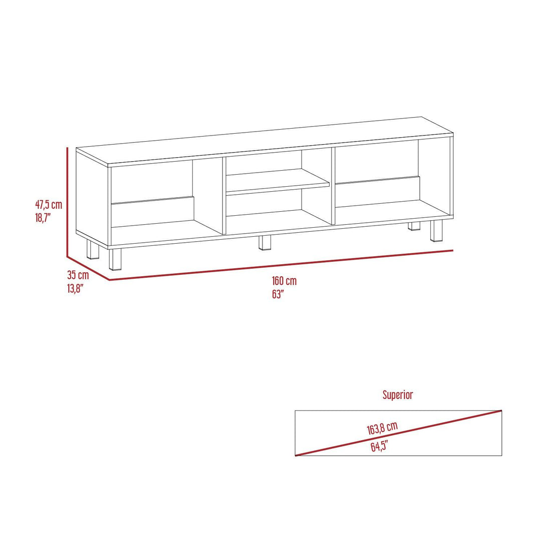 Mesa para TV de 70". cuenta con un entrepaño y cuatro compartimentos para almacenar objetos.