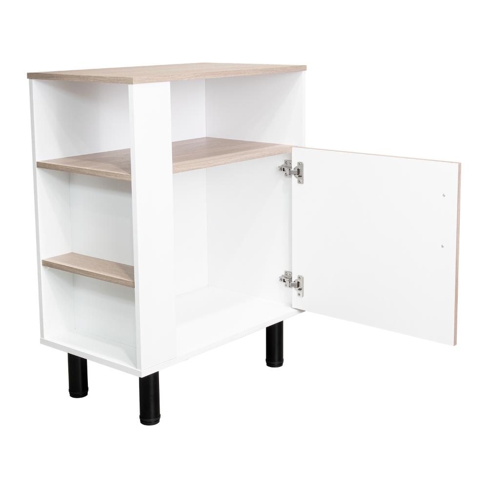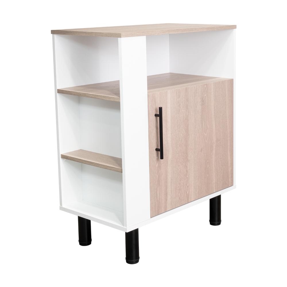 Elaborado en Madera aglomerada MDP, recubierta con láminas melamínicas de excelente calidad, en color Bardolino y Blanco Duqueza.