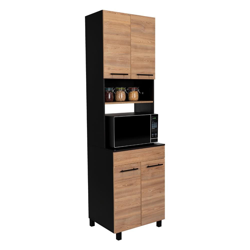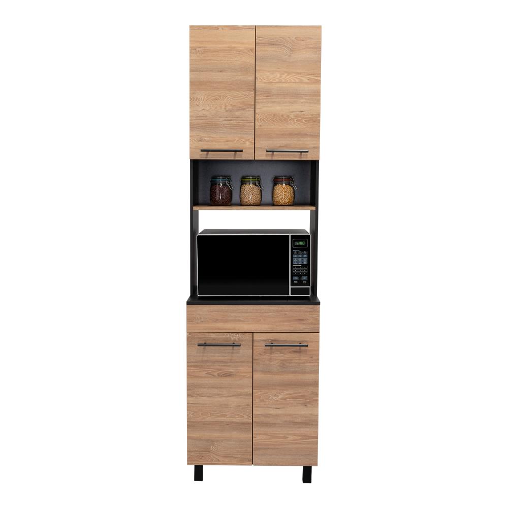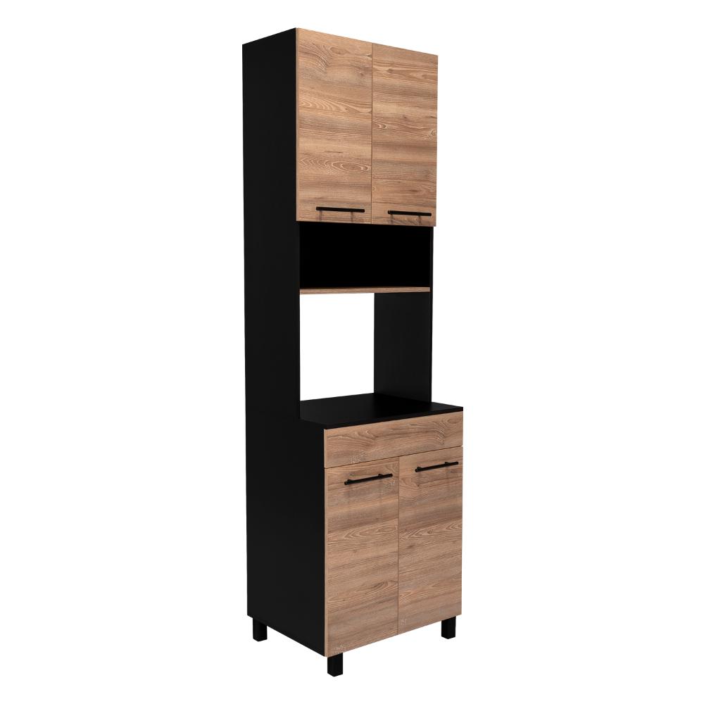 Módulo Microondas, con espacio para horno microondas, 4 puertas abatibles, compartimientos para guardar alimentos, utensilios de cocina y/u otros, manijas metálicas.