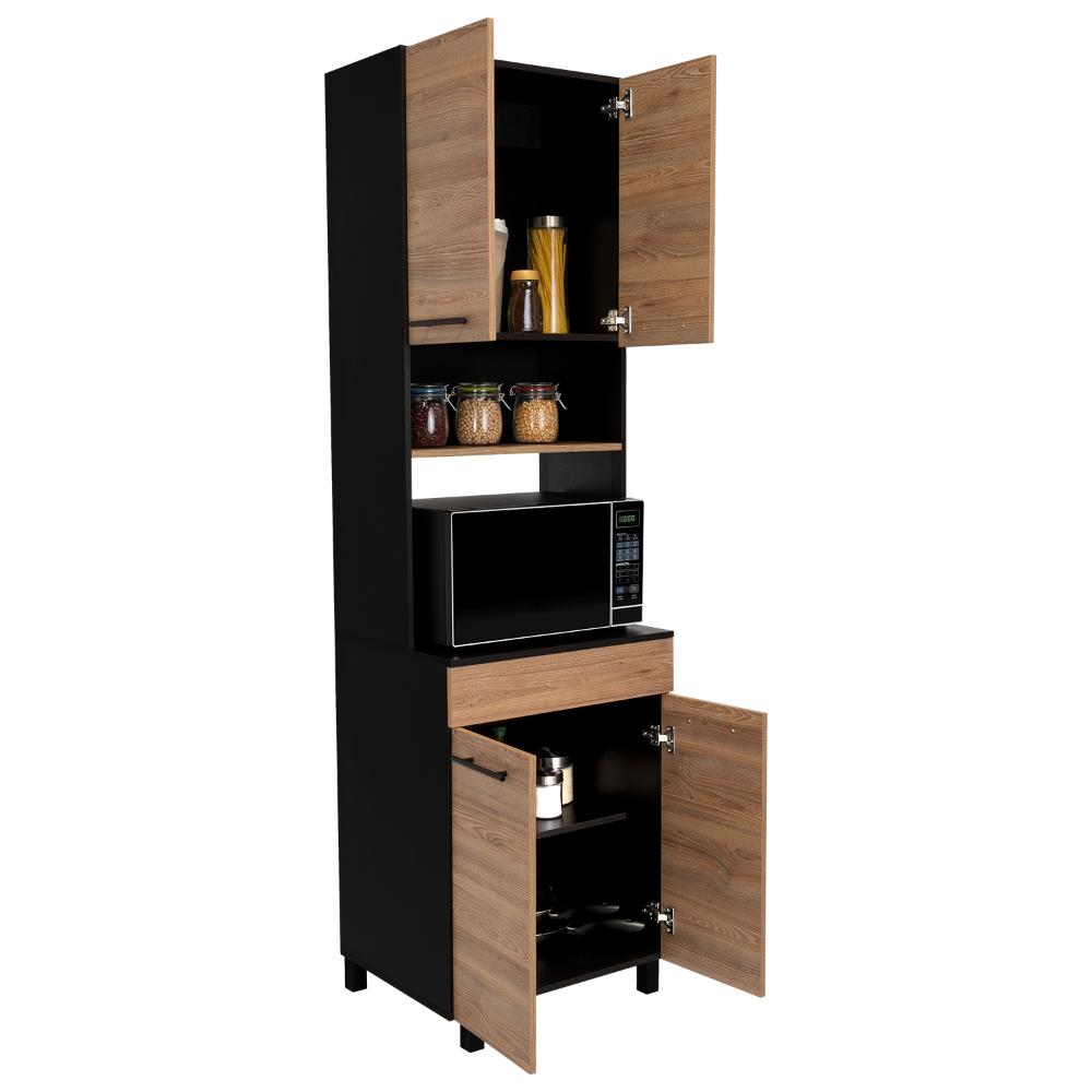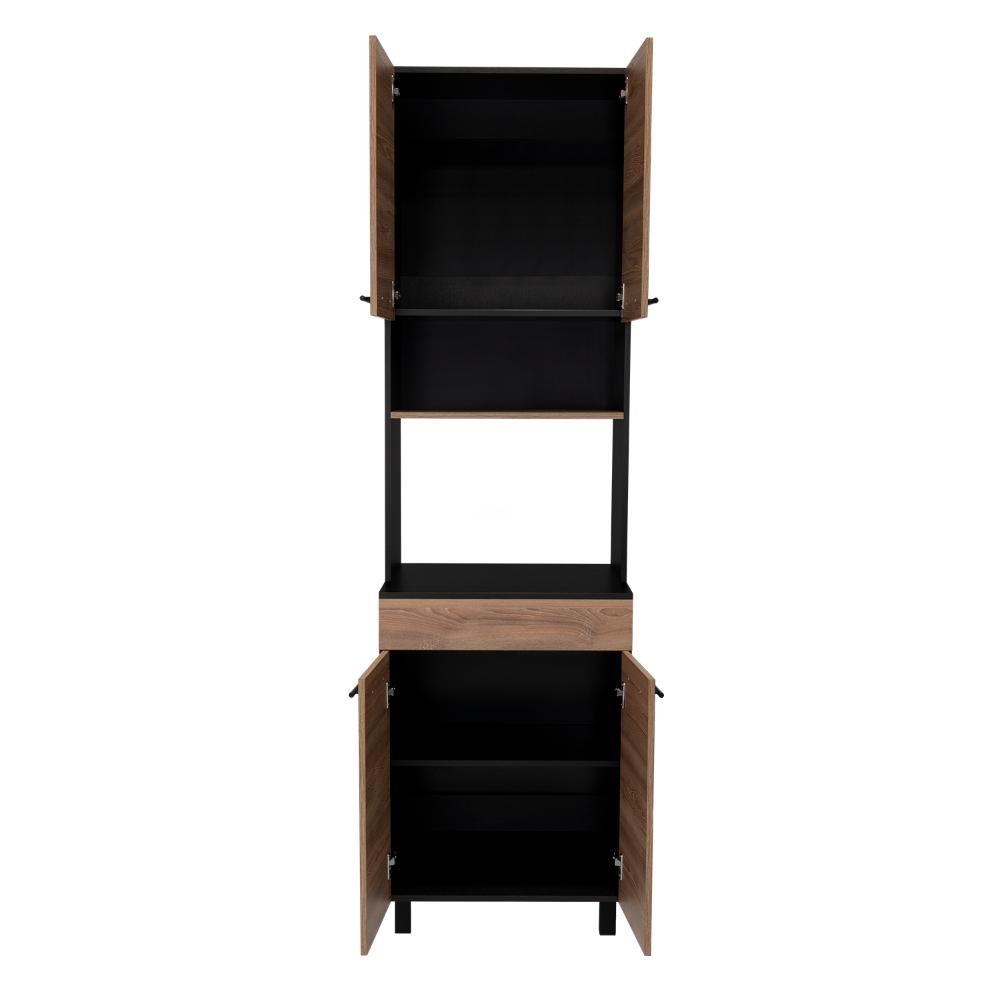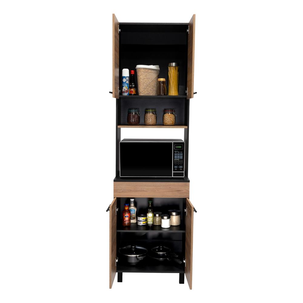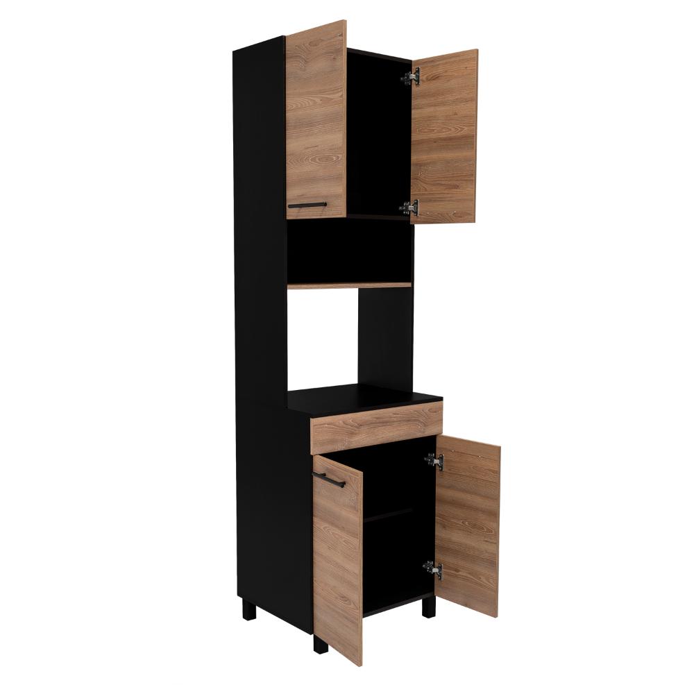 Módulo Microondas, con espacio para horno microondas, 4 puertas abatibles, compartimientos para guardar alimentos, utensilios de cocina y/u otros, manijas metálicas.