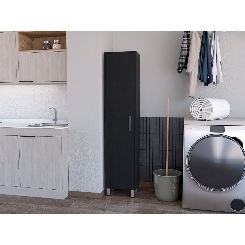 Muebles Aseo con gabinete para artículos de aseo, incluye colgadero para escobas, manijas metálicas.