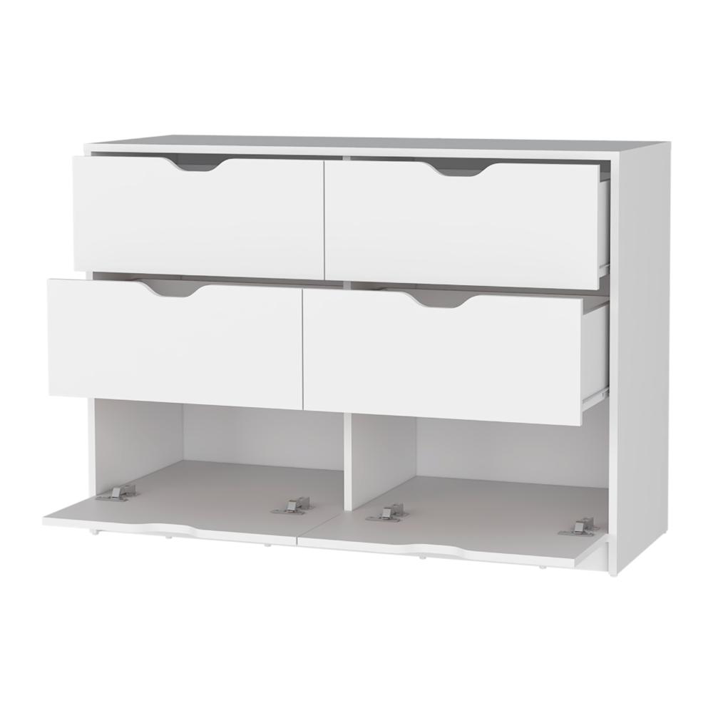 Organizador, con 4 cajones multiusos deslizables y 2 puertas abatibles.