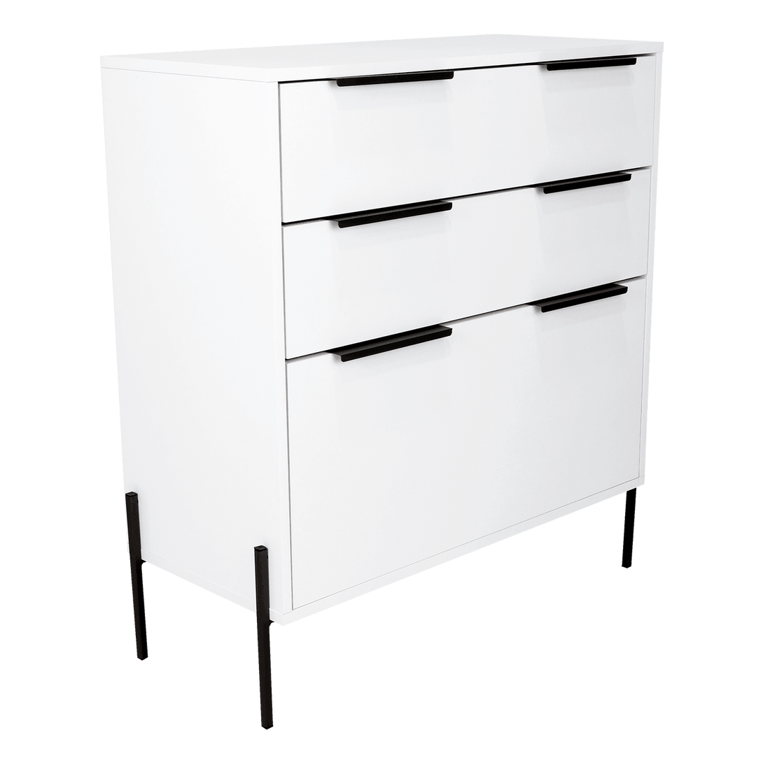 Elaborado en Madera aglomerada MDP, recubierta con láminas melamínicas de excelente calidad, en color Blanco Nevado.