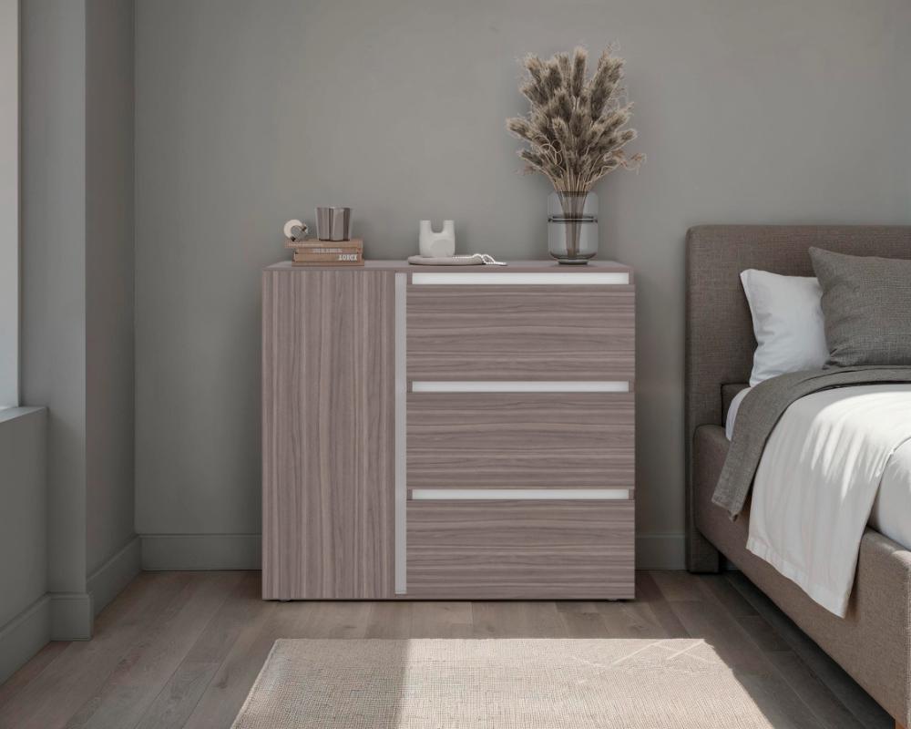 Organizador Niza, Avellana y Blanco, con tres cajones y gran capacidad de almacenamiento