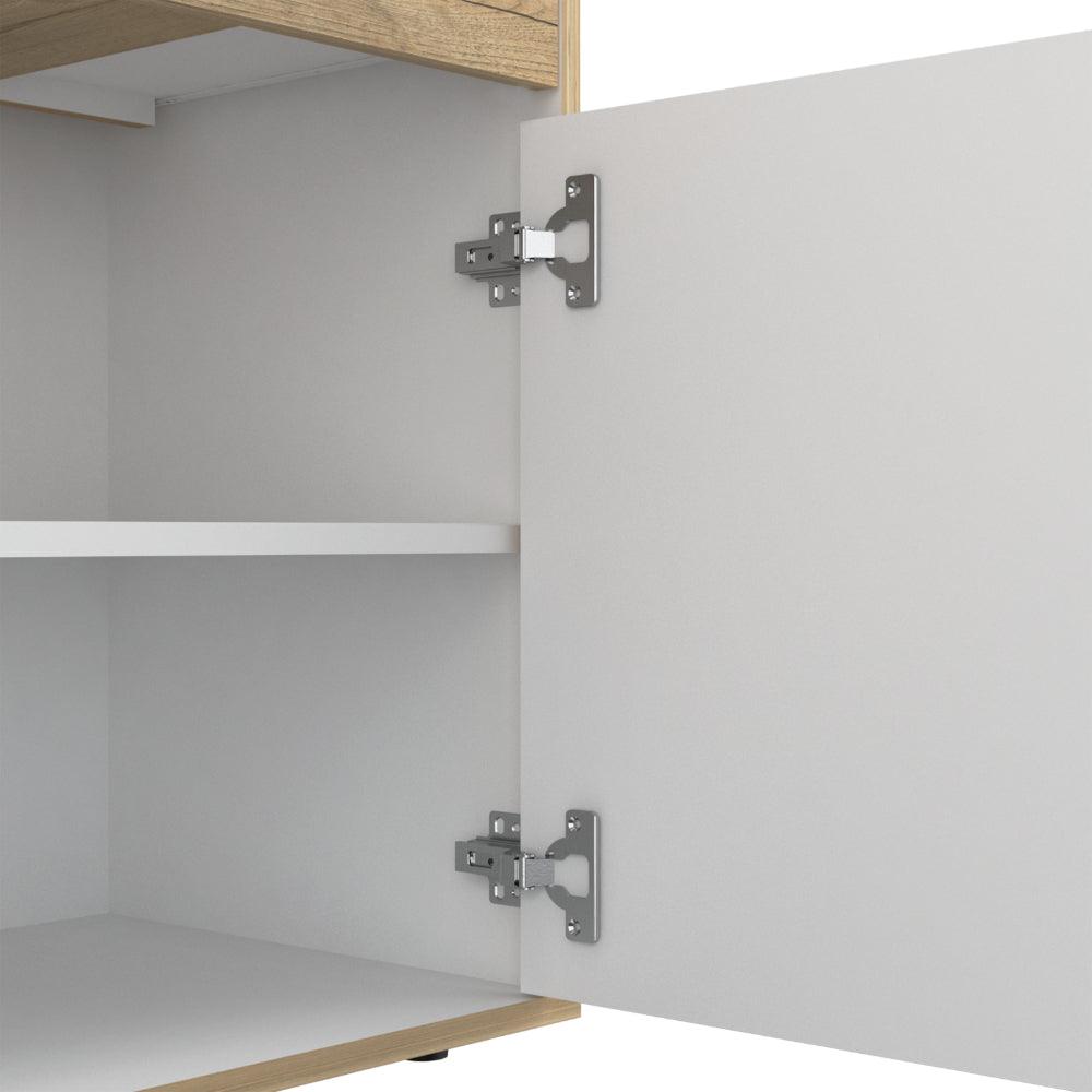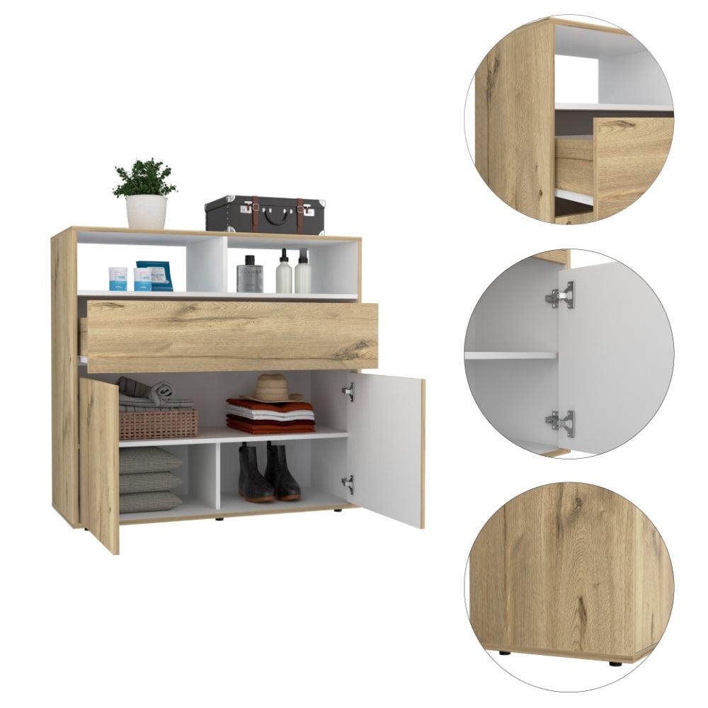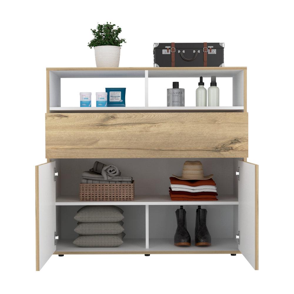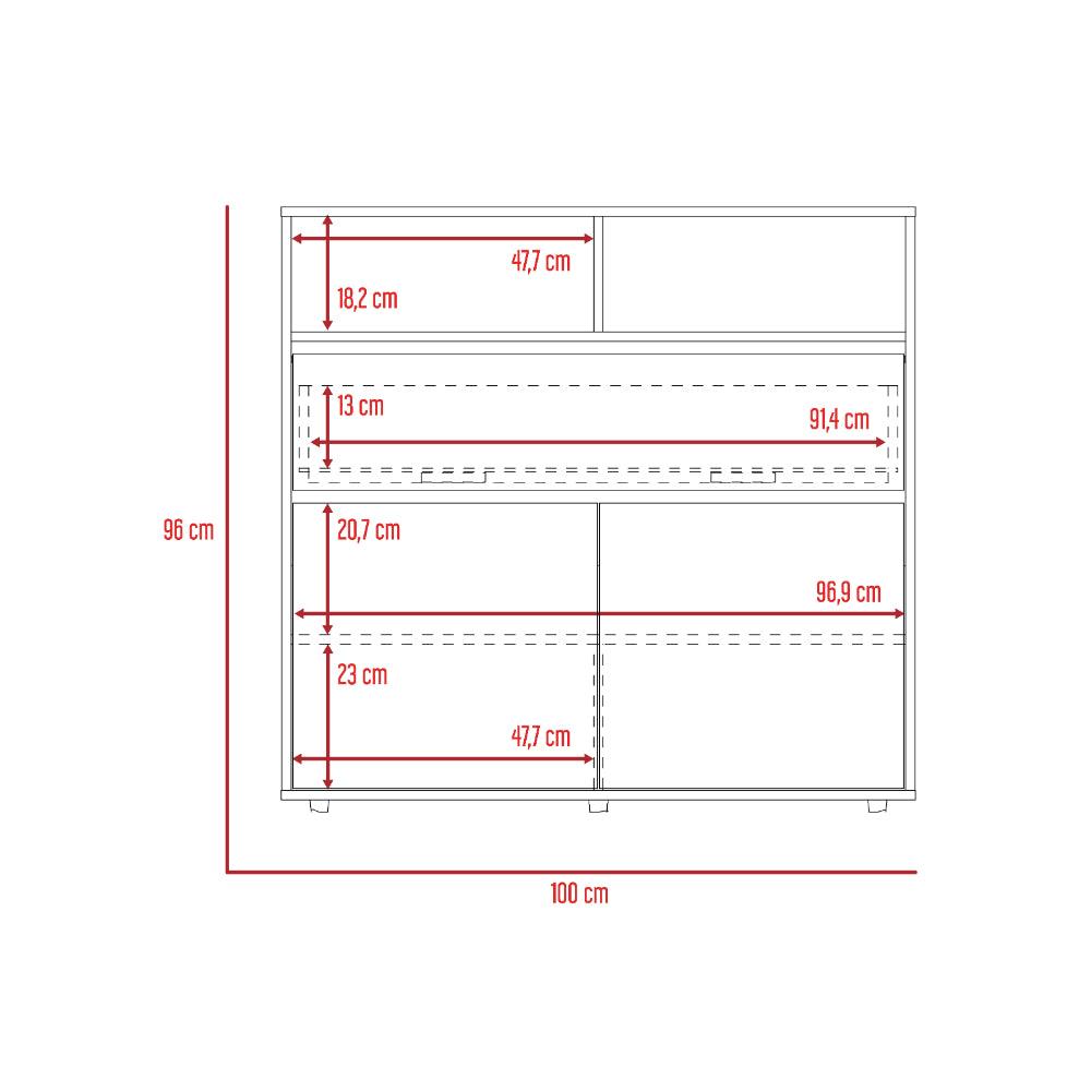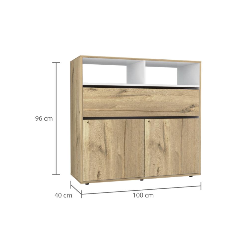 Organizador, con un cajón, dos puertas abatibles, diseño moderno, fácil armado.
